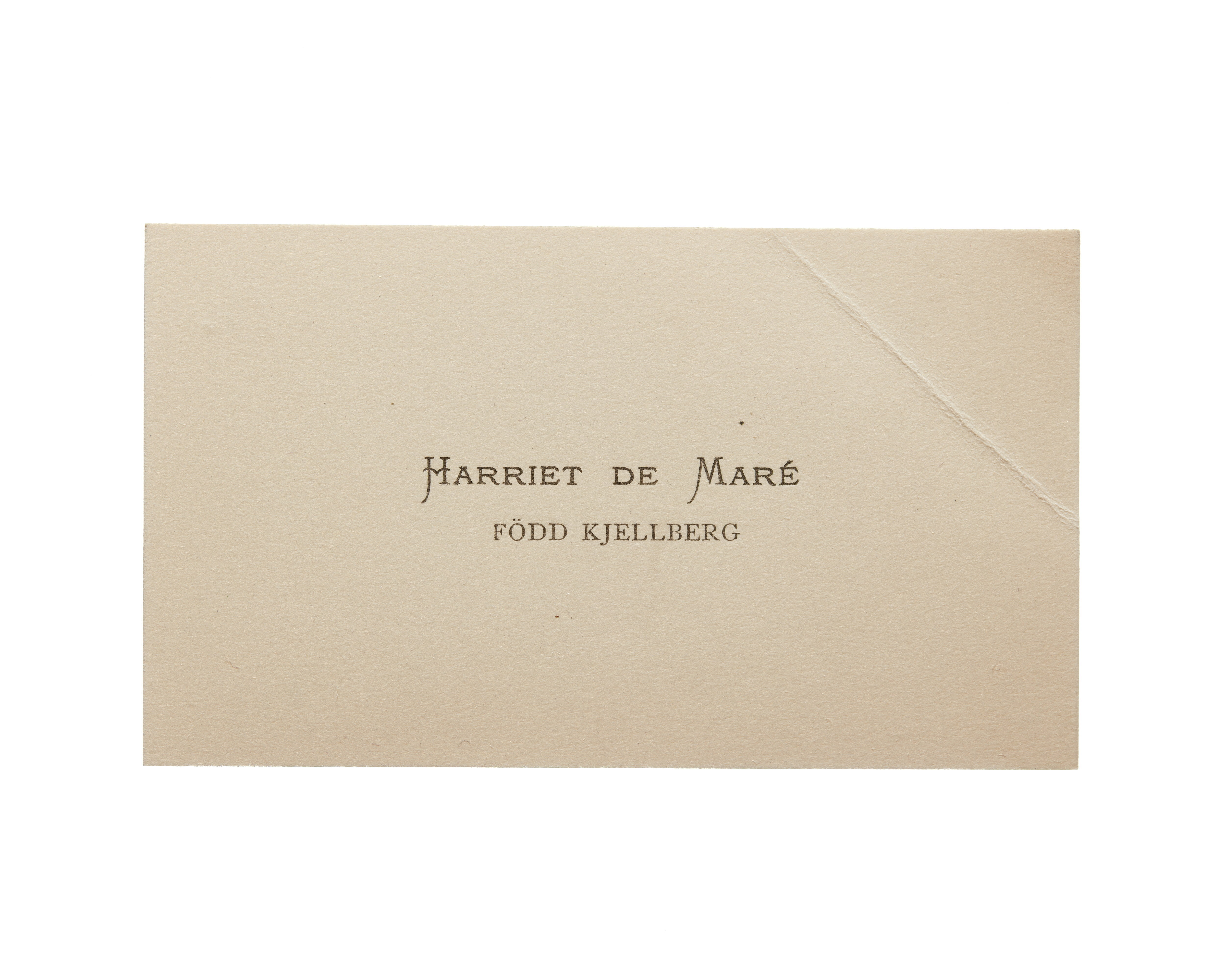 Visitkort från Harriet de Mare f. Kjellberg, 1916.