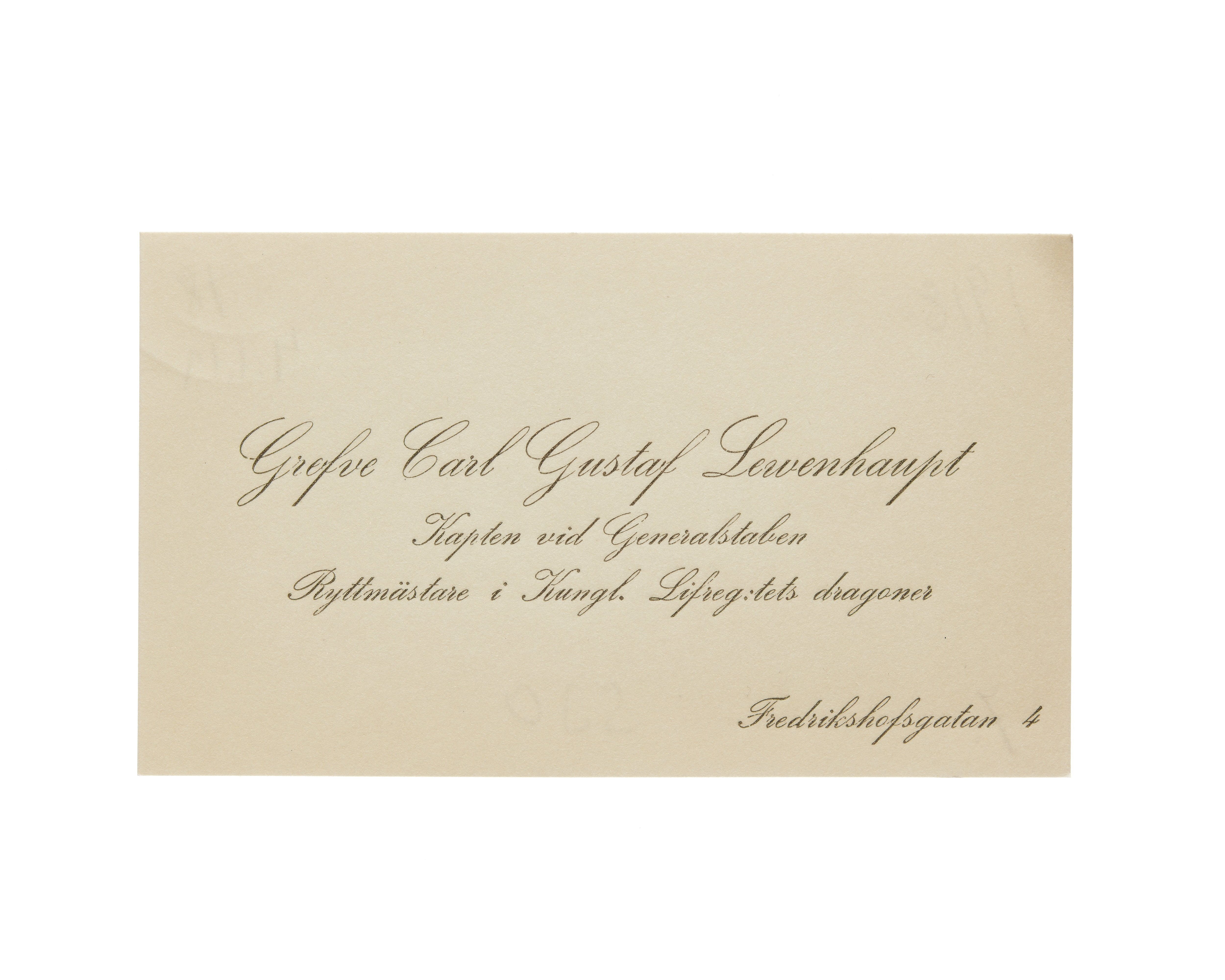 Visitkort från greve och grevinnan Carl Gustaf Lewenhaup. Fredrikshofsgatan 4.