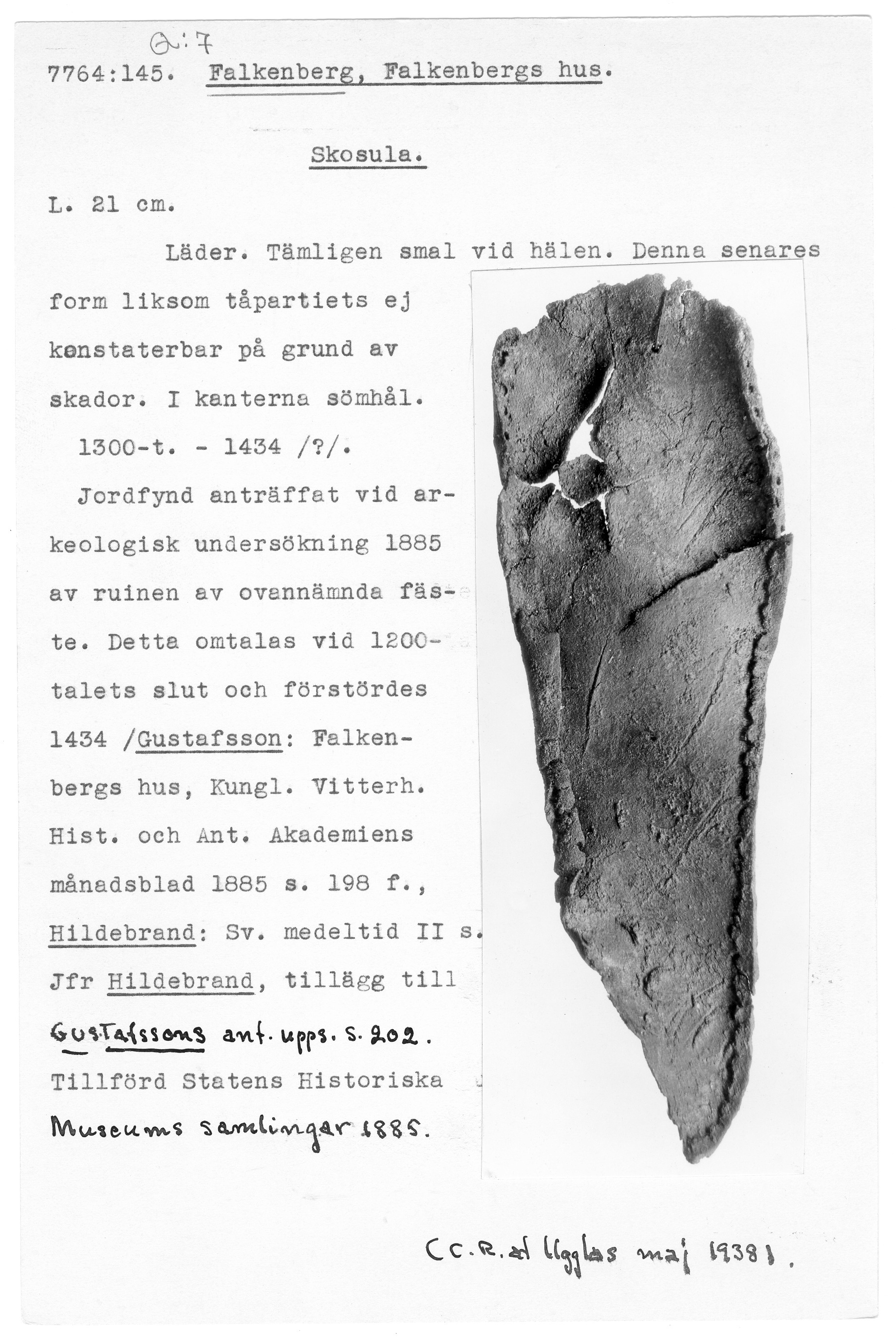 7764:145 \ Halland \ Falkenberg, Falkenbergs hus. \ Skosula \ Medeltid