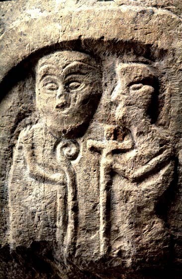 två män med kräkla och kors