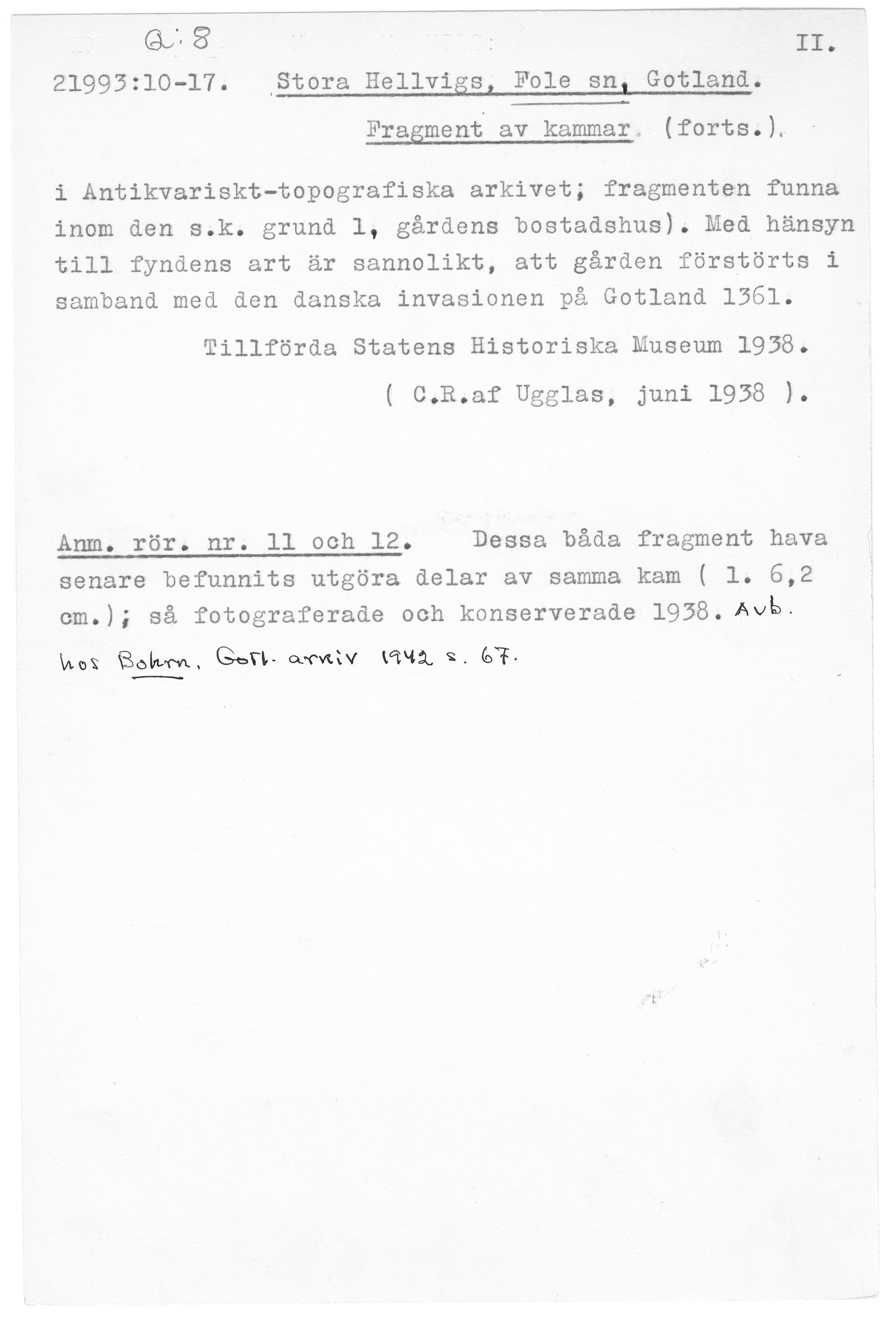 21993:10-17 \ Gotland \ Stora Hellvigs, Fole sn, Gotland. \ Fragment av kammar (forts) \ Medeltid