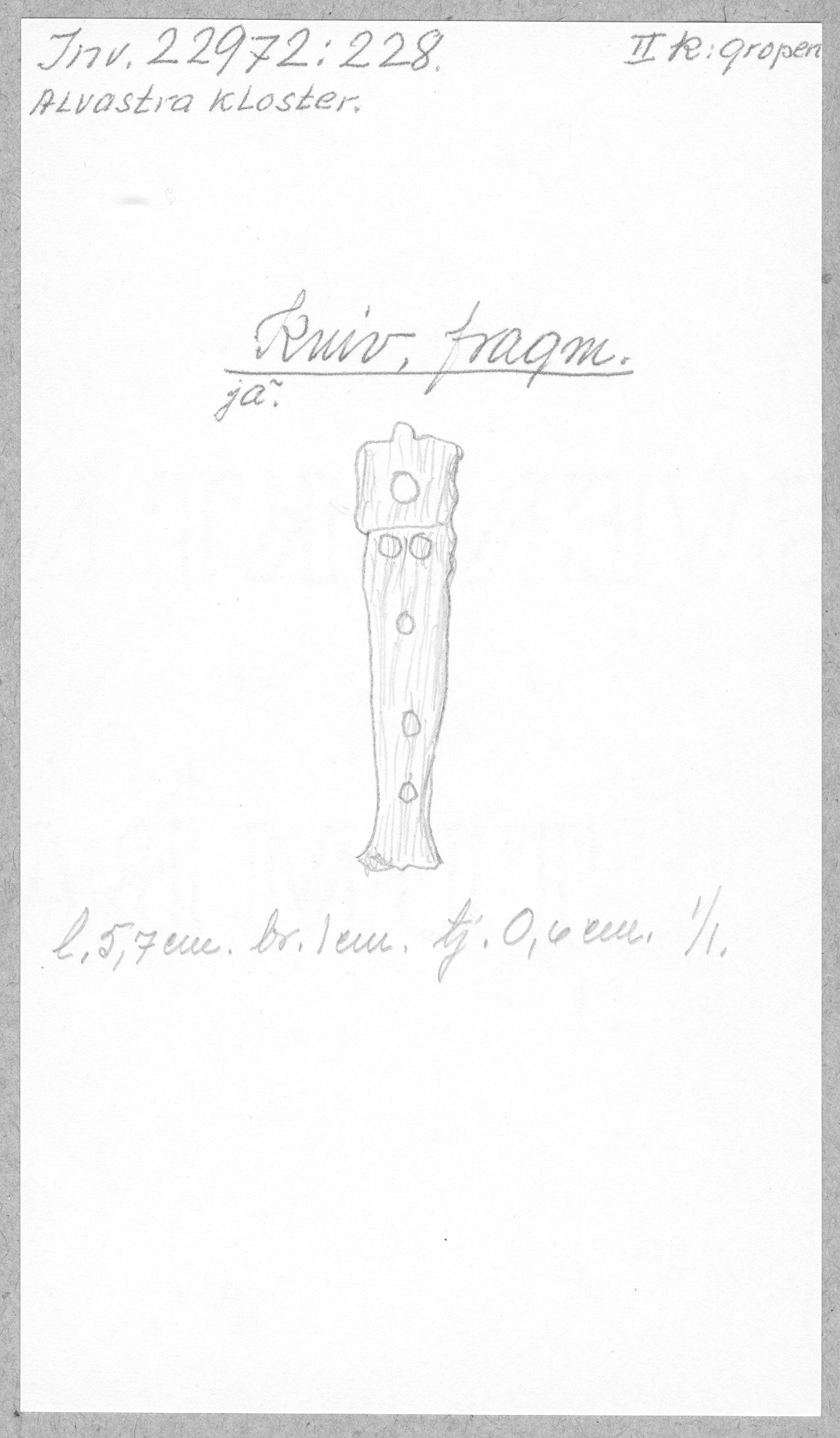 Ög, Västra Tollstad, Alvastra kloster. Kniv, fragm