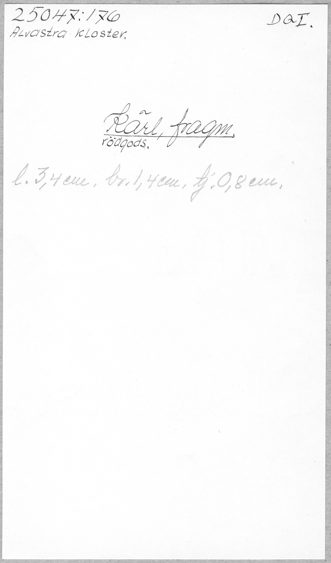 Ög, Västra Tollstad, Alvastra kloster. Kärl, fragm