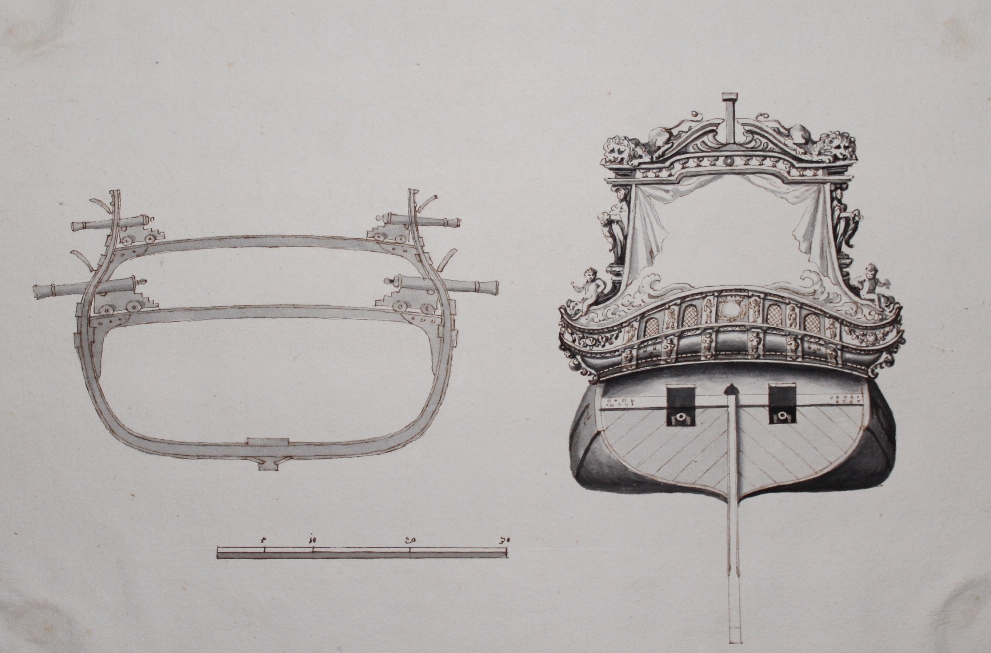 Sida ur bok: "Underschiedliche Abriss von Schiffe und Festung."