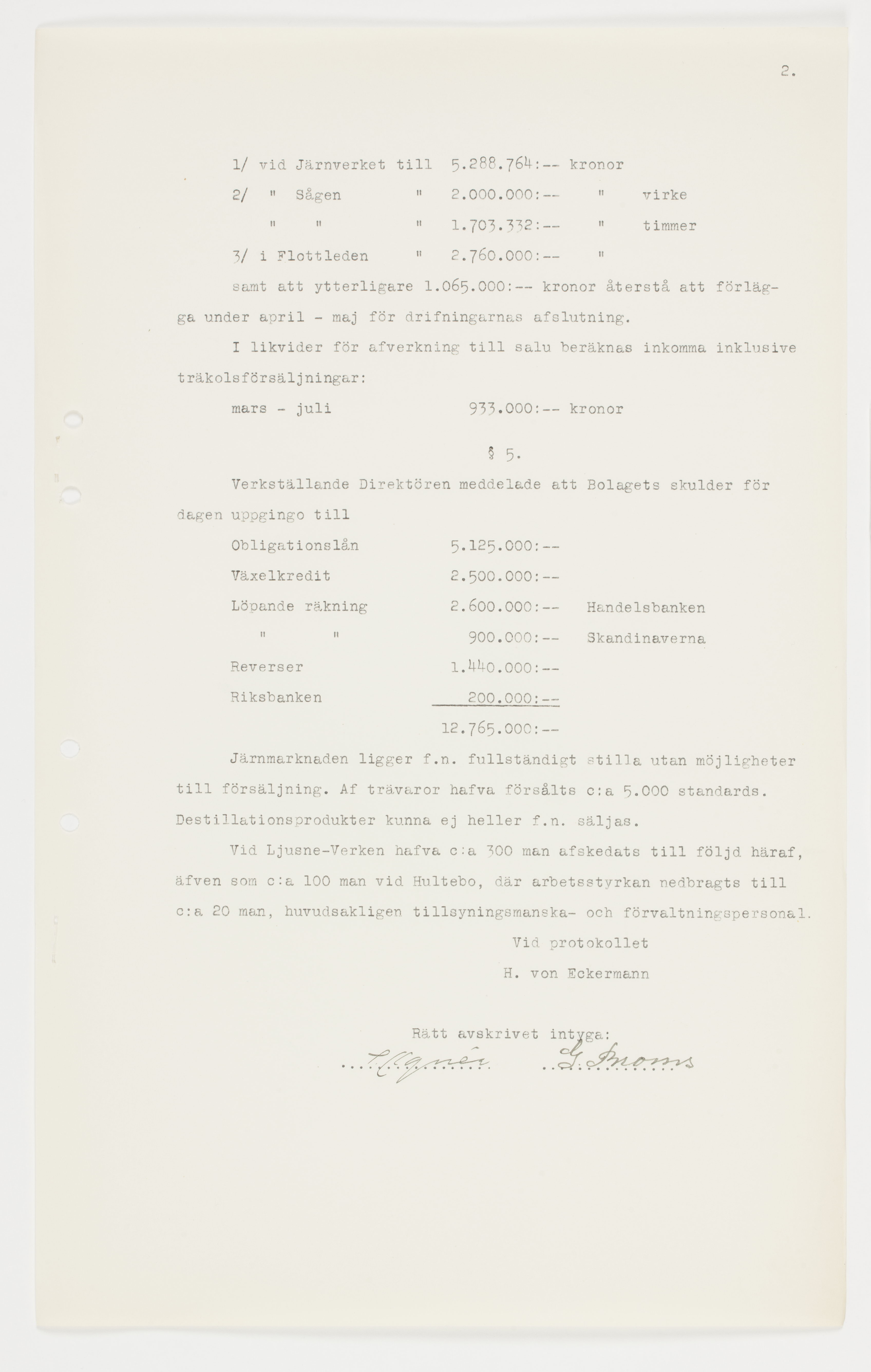 Avskrifter av styrelseprotokoll hållet hos styrelsen för Ljusne-woxna Aktiebolag 1919.,LXIV:II:B.g