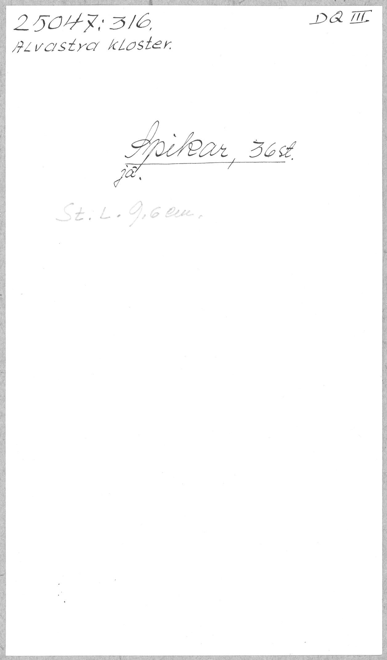 Ög, Västra Tollstad, Alvastra kloster. Spikar, 36 st