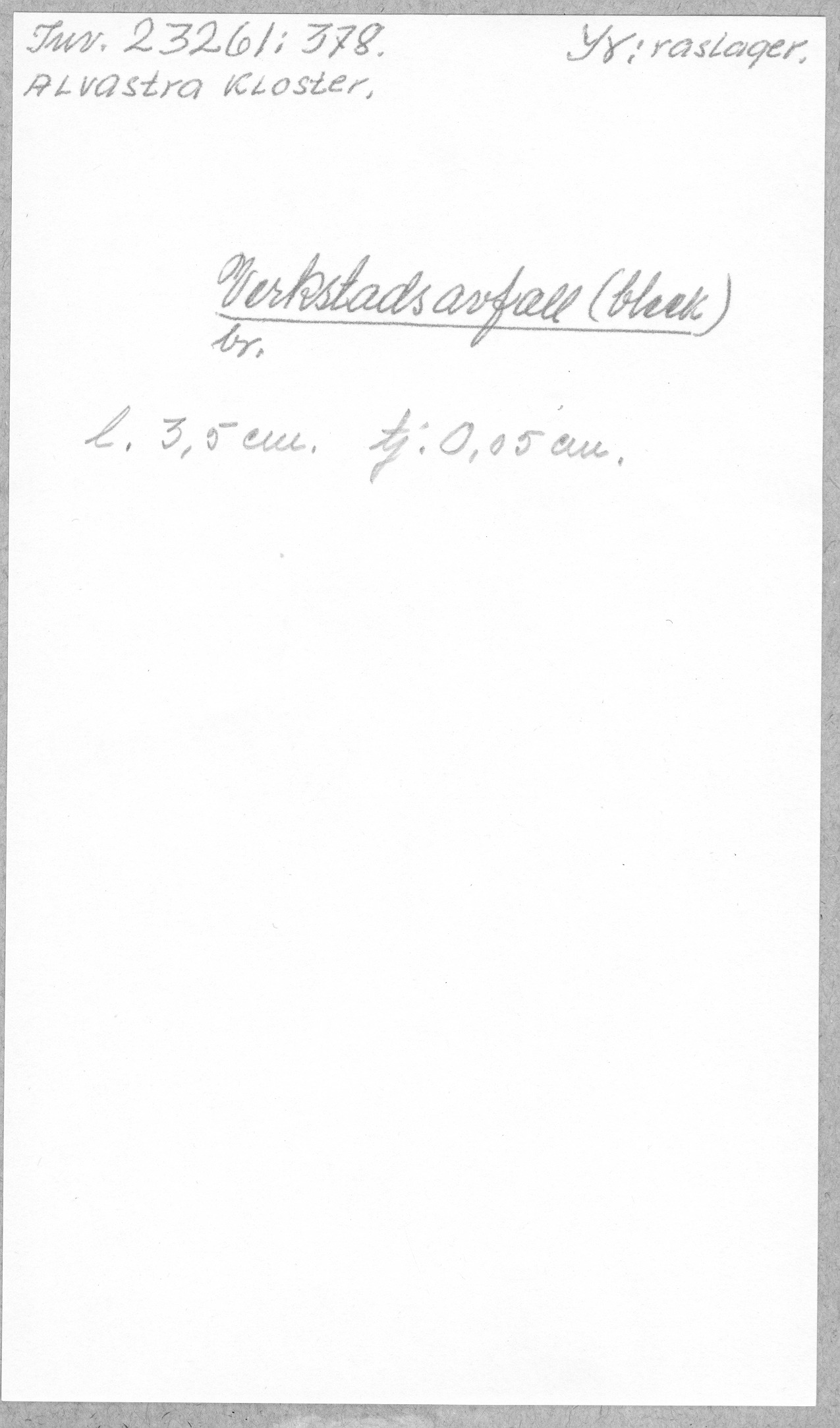 Ög, Västra Tollstad, Alvastra kloster. Verkstadsavfall (bleck)