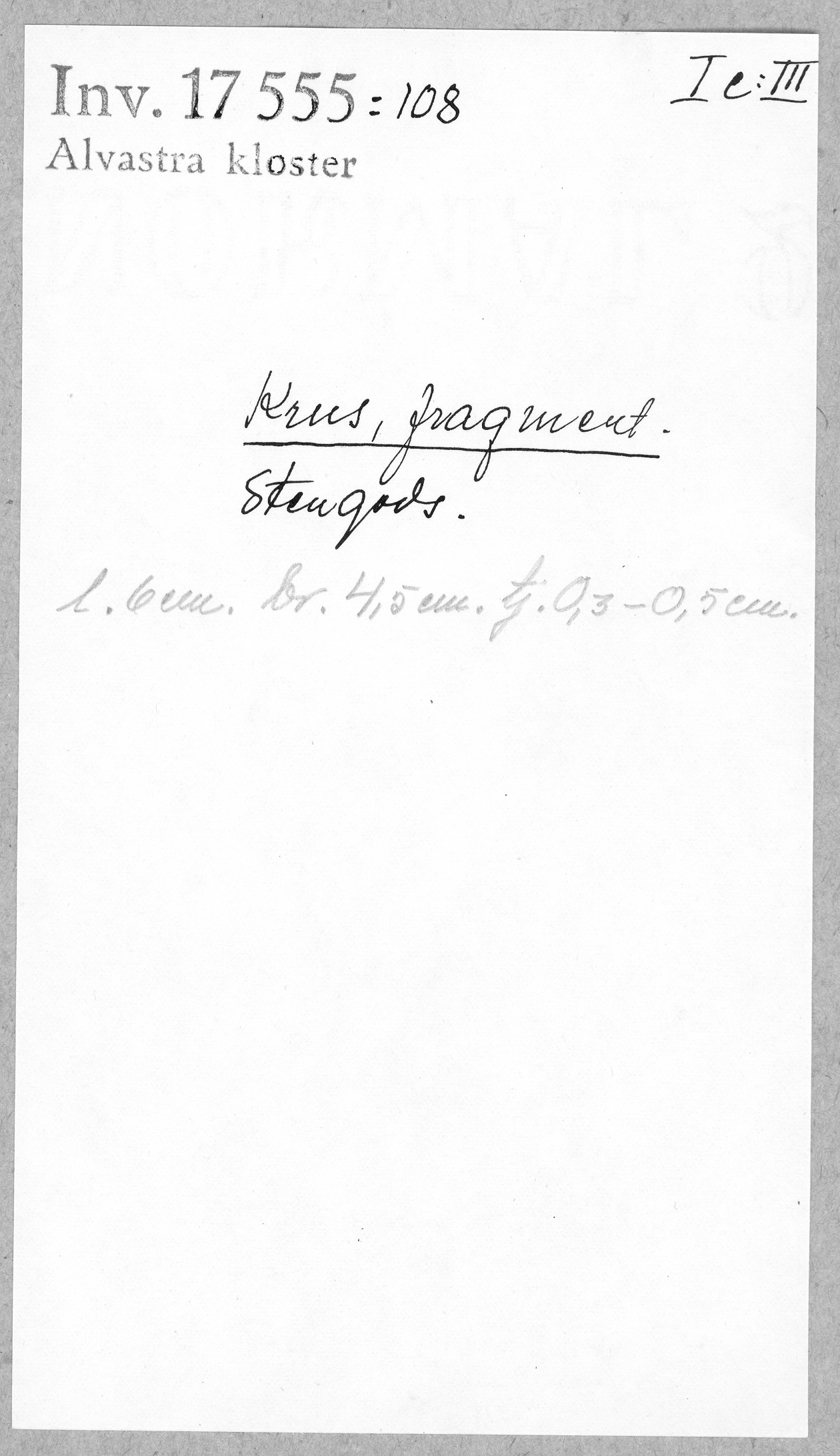 Ög, Västra Tollstad, Alvastra kloster. Krus, fragment