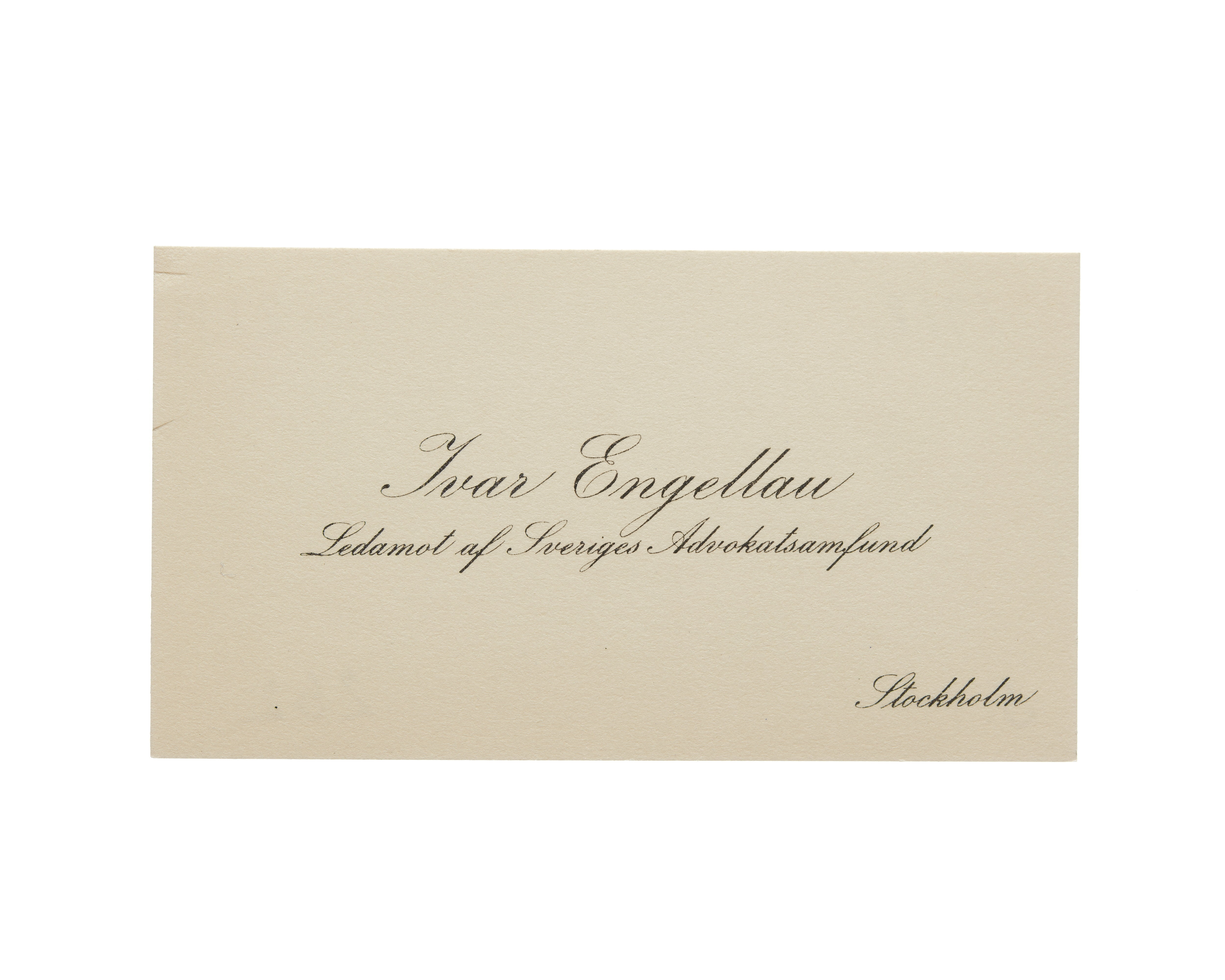 Visitkort från Ivar Engellau, Ledamot av Sveriges Advokatsamfund, 1918.