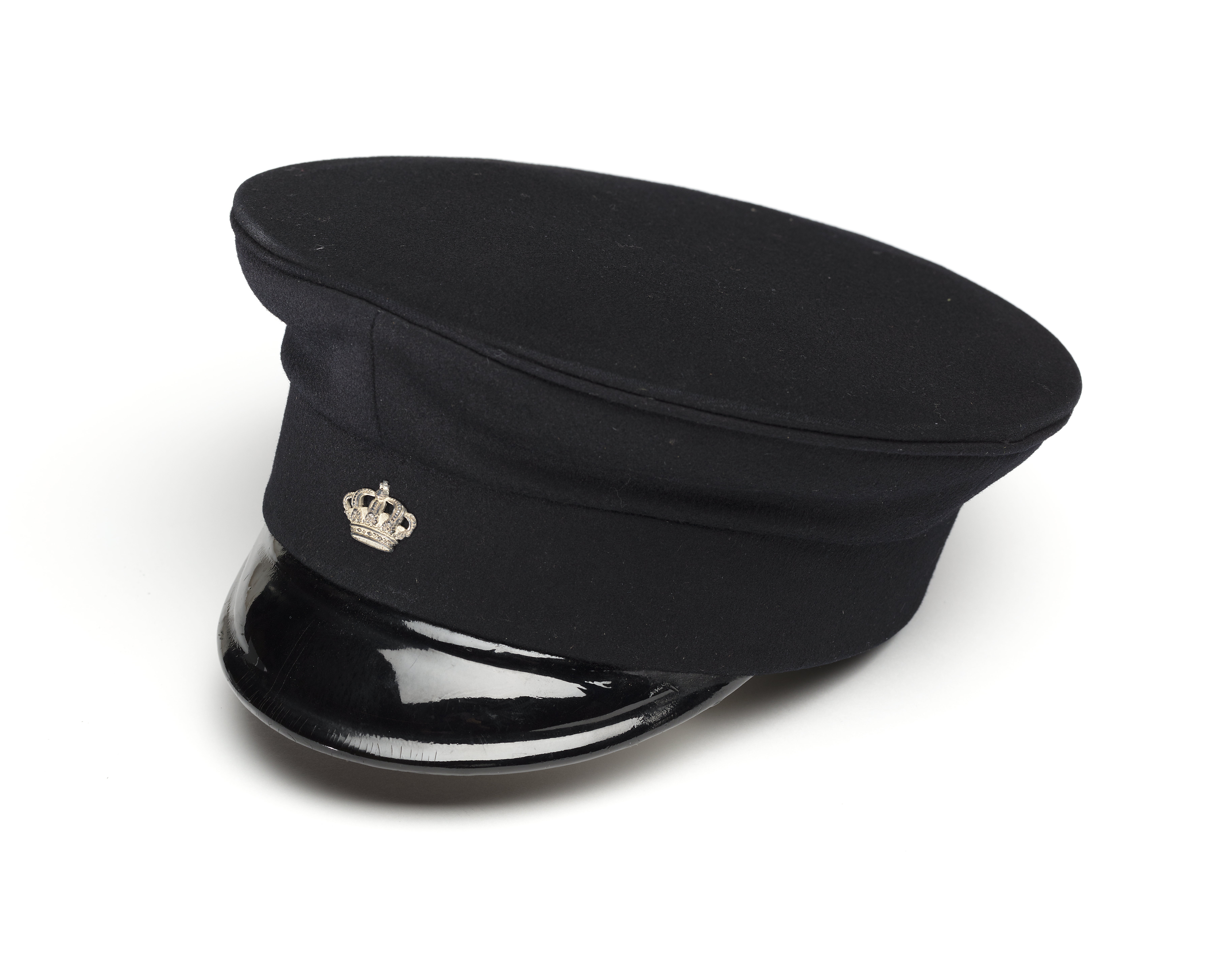Skärmmössa till åklivré för lakej och chaufför vid Gustaf V:s hovstat, 1907-1950.