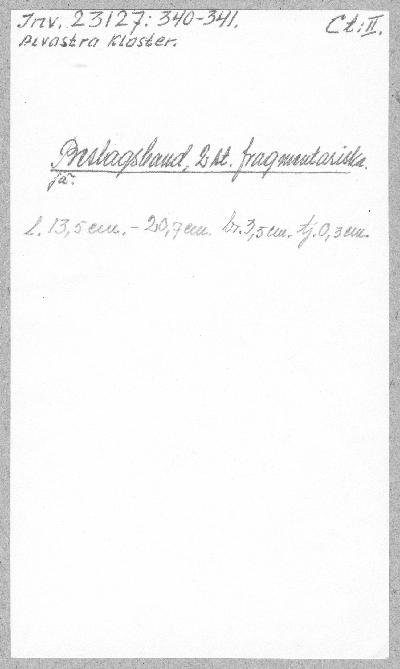 Ög, Västra Tollstad, Alvastra kloster. Beslagsband, 2 st. fragmentariska