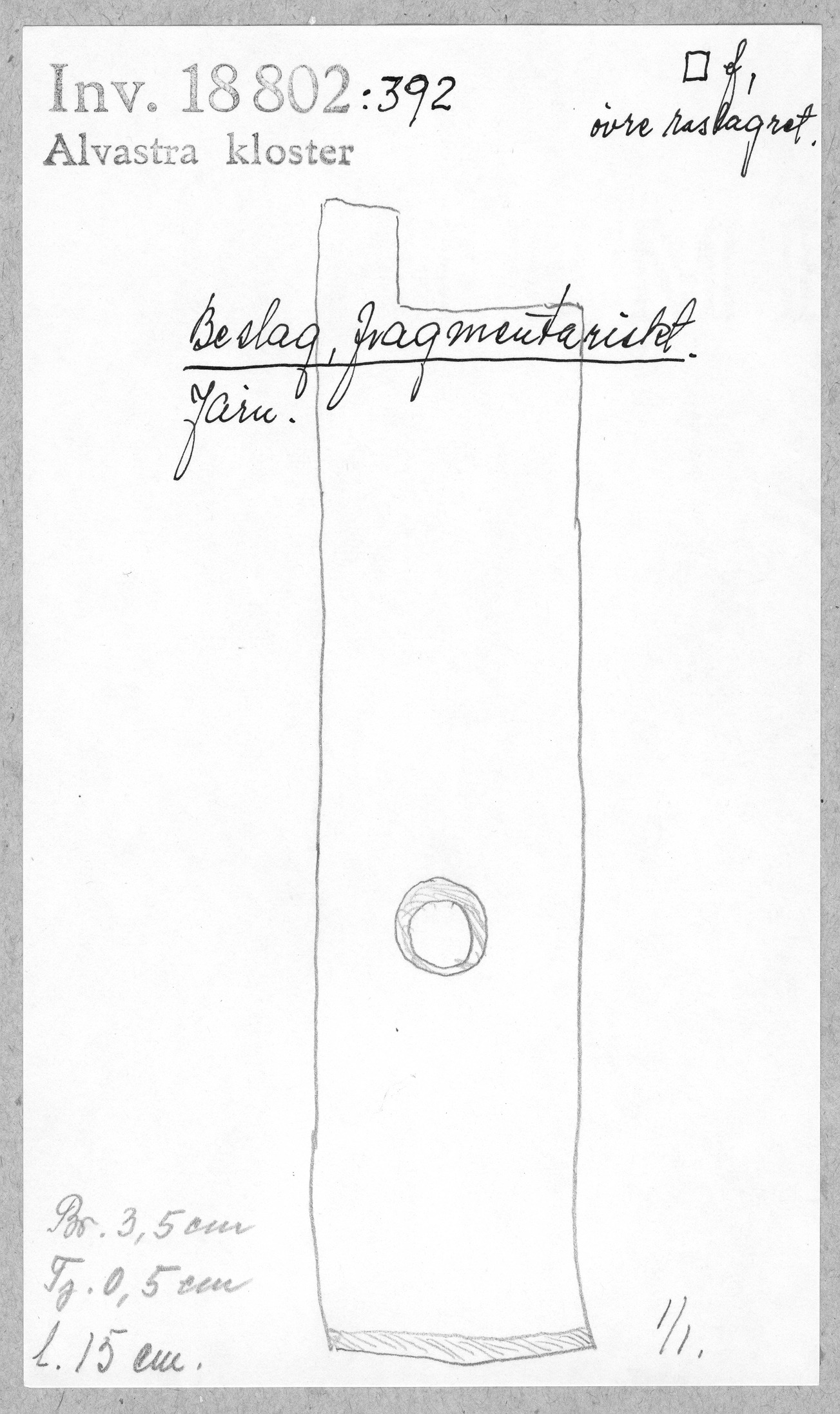 Ög, Västra Tollstad, Alvastra kloster. Beslag, fragmentariskt