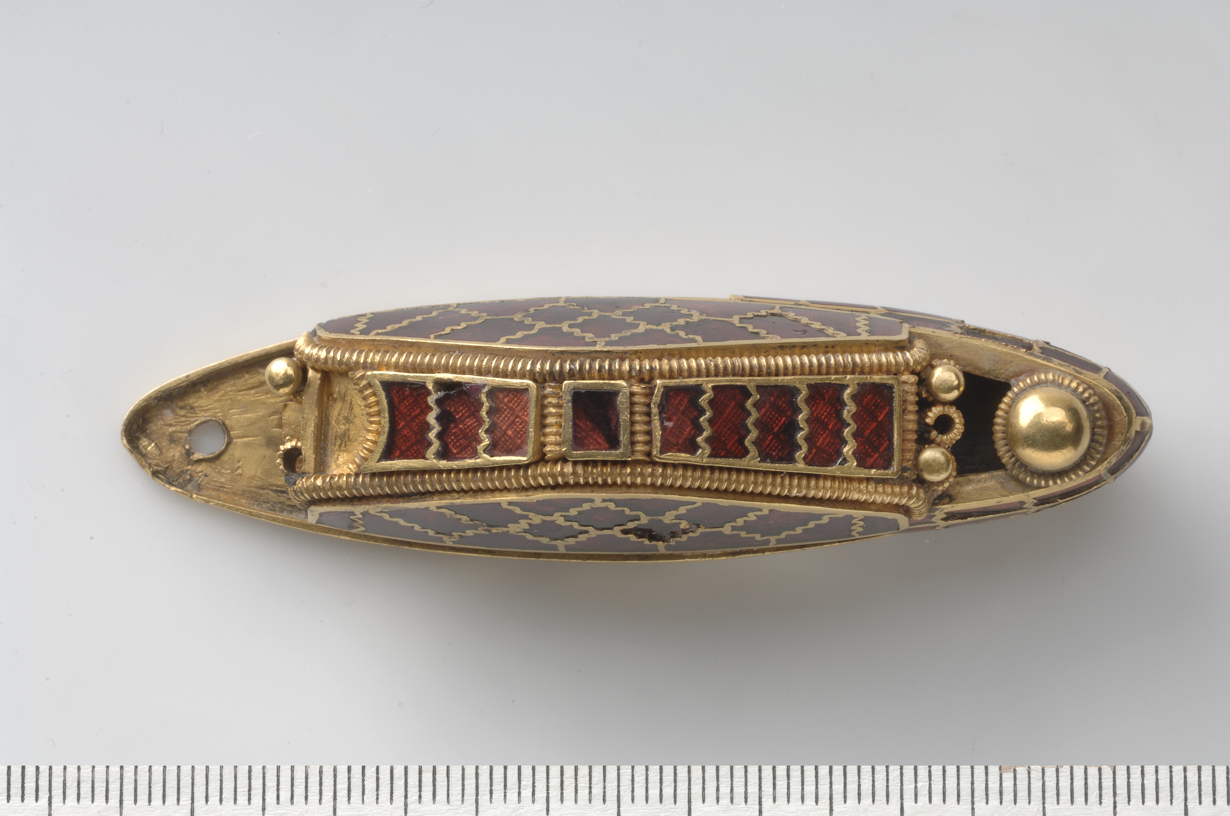 SHM 11317 svärdsknapp, guld, granat Bl Sturkö Stora Sandviken