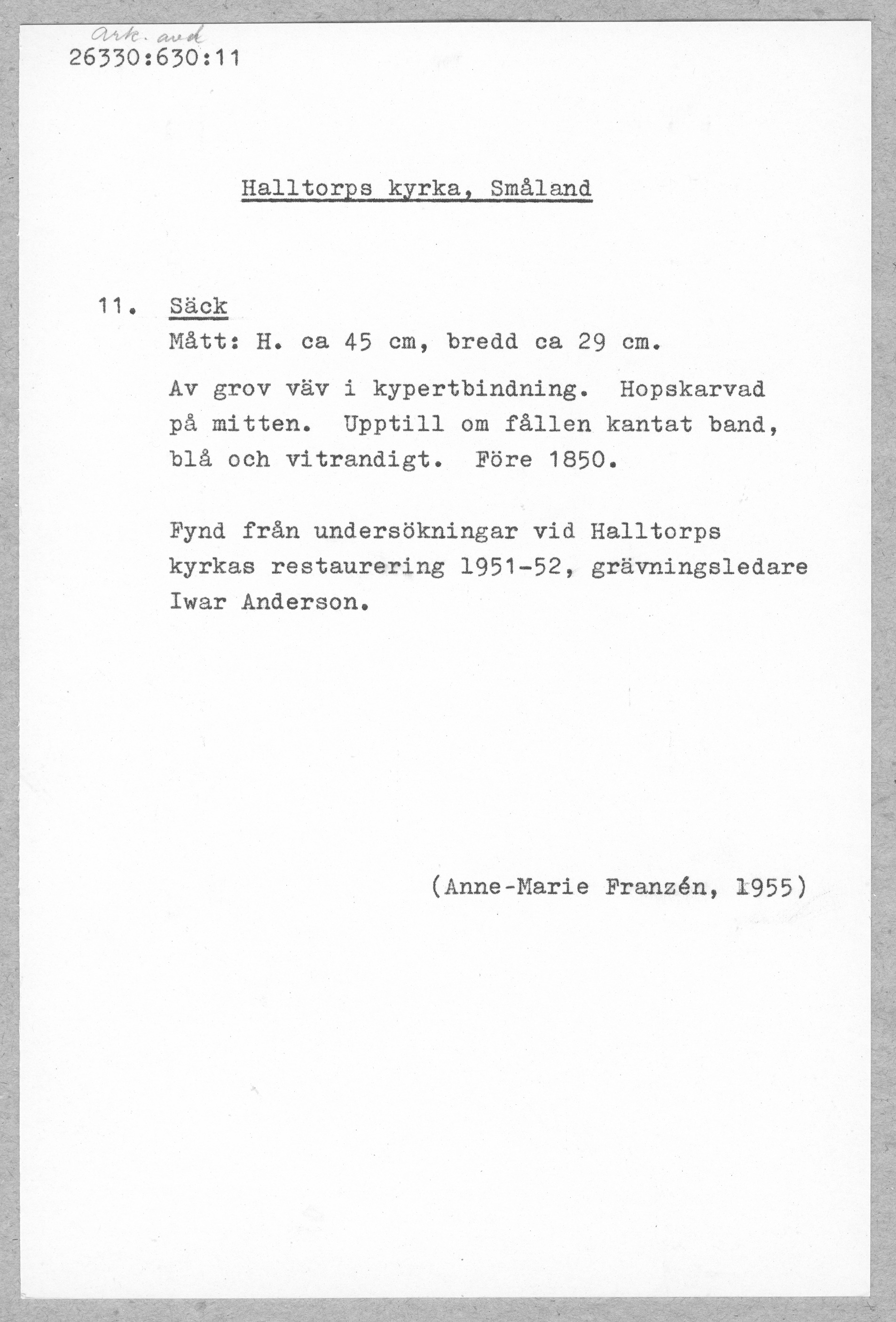 26330:630 \ Halltorps kyrka, Småland \ Säck \ Medeltid