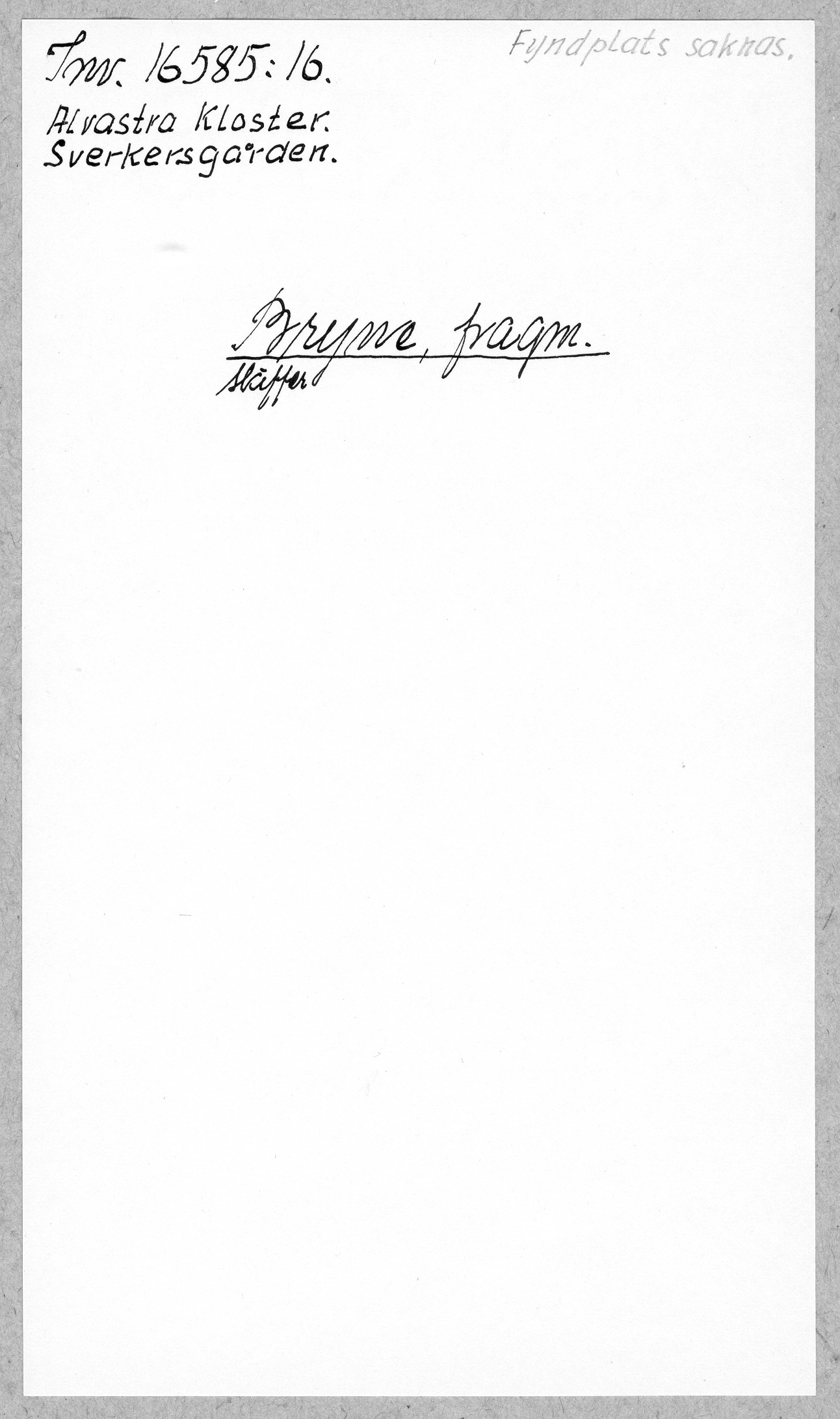 Ög, Västra Tollstad, Alvastra kloster. Bryne, fragm