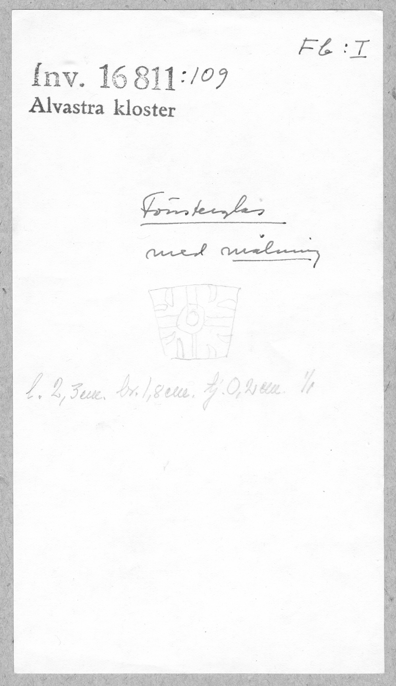 Ög, Västra Tollstad, Alvastra kloster. Fönsterglas med målning
