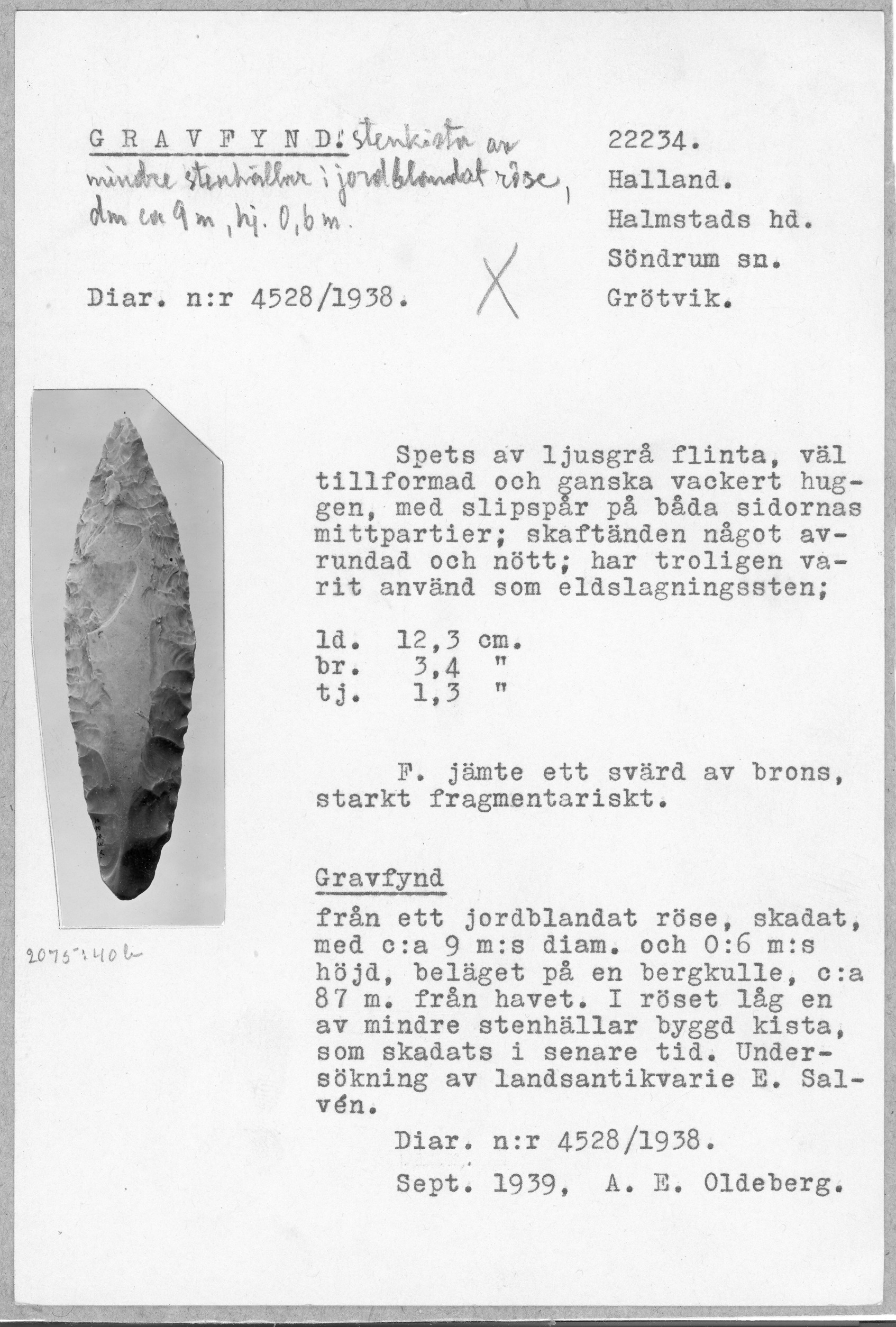 22234\Halland, Halmstads hd, Söndrum sn, Grötvik\Gravfynd