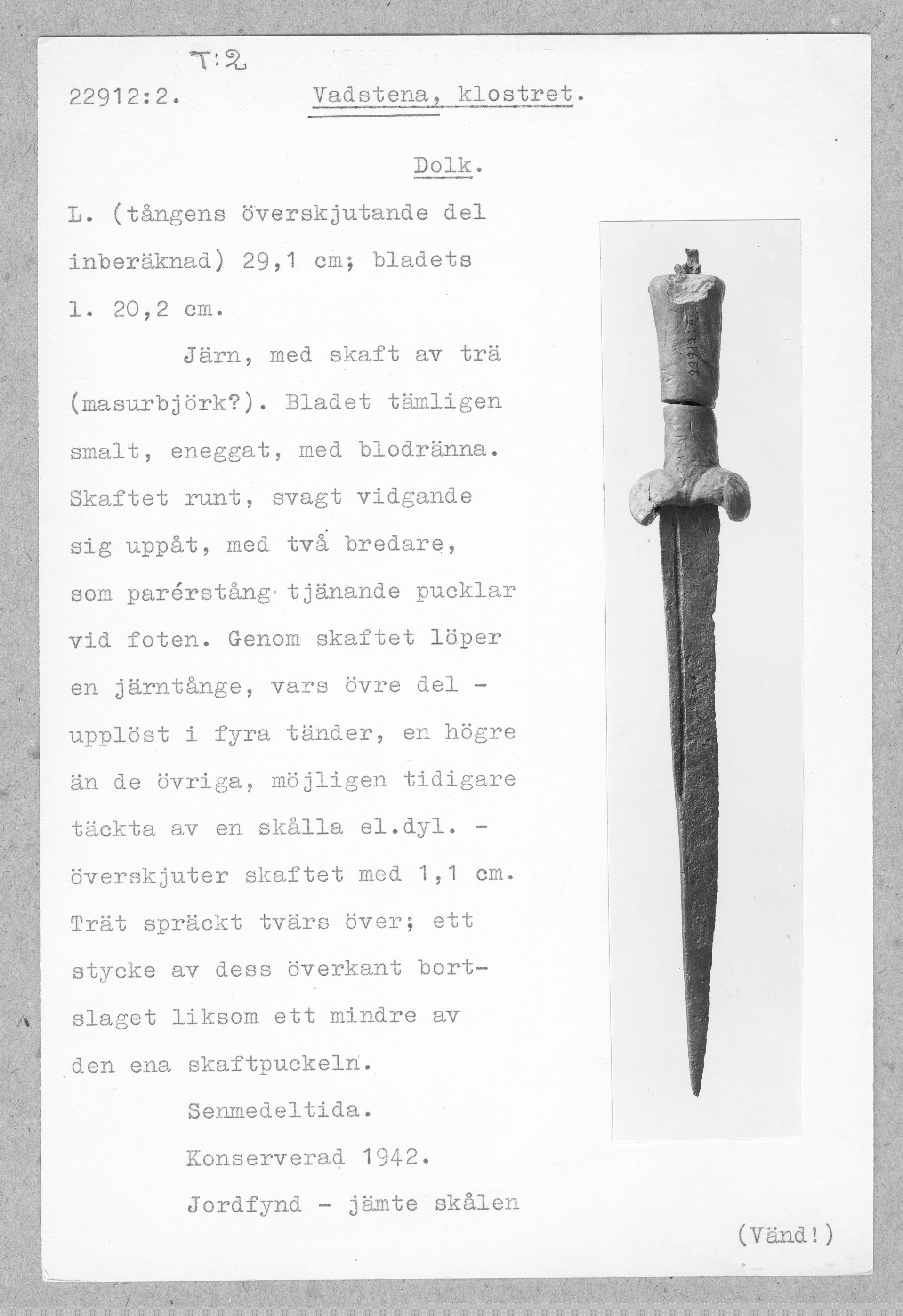 22912:2 \ Östergötland \ Vadstena, klostret. \ Dolk \ Medeltid