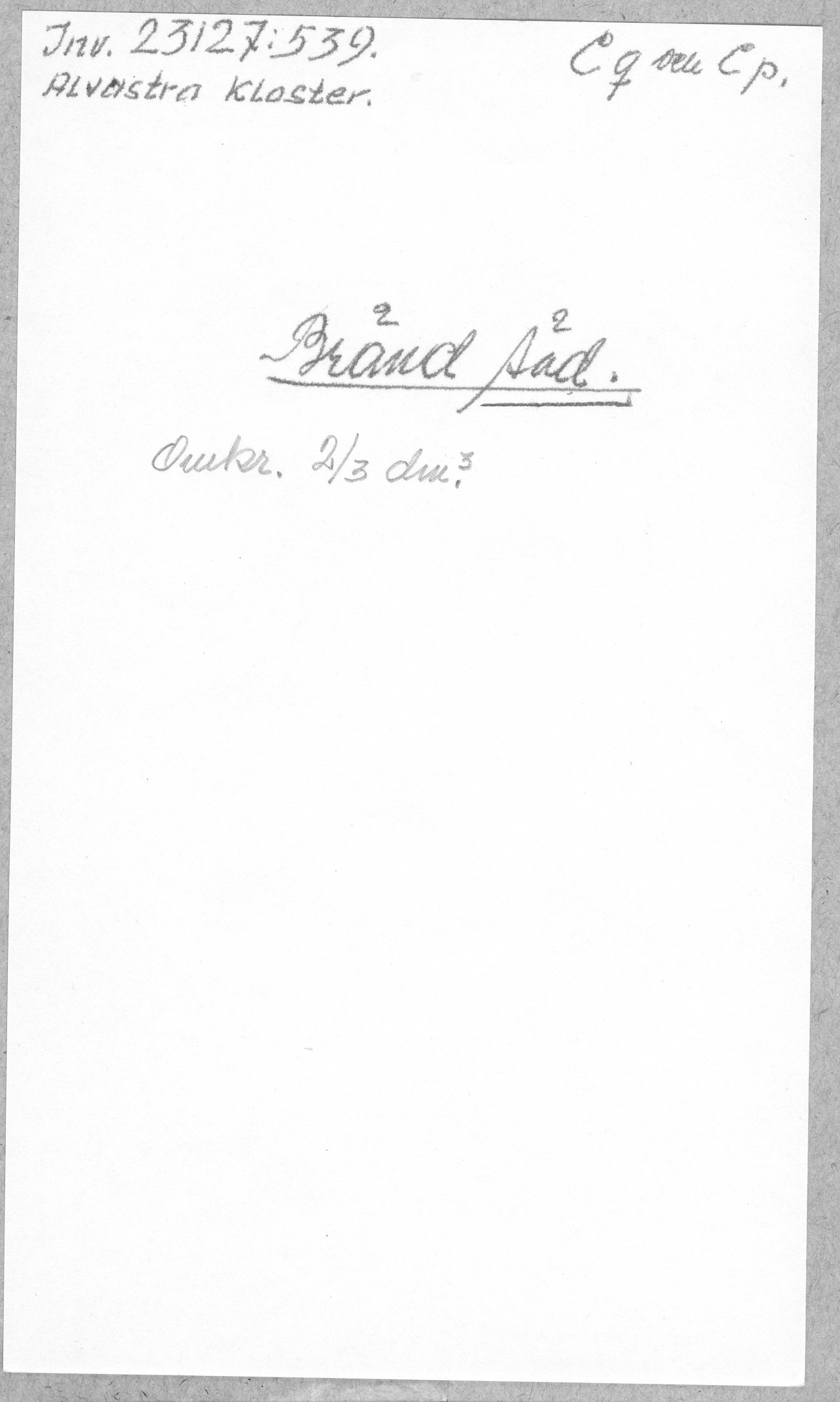 Ög, Västra Tollstad, Alvastra kloster. Bränd säd