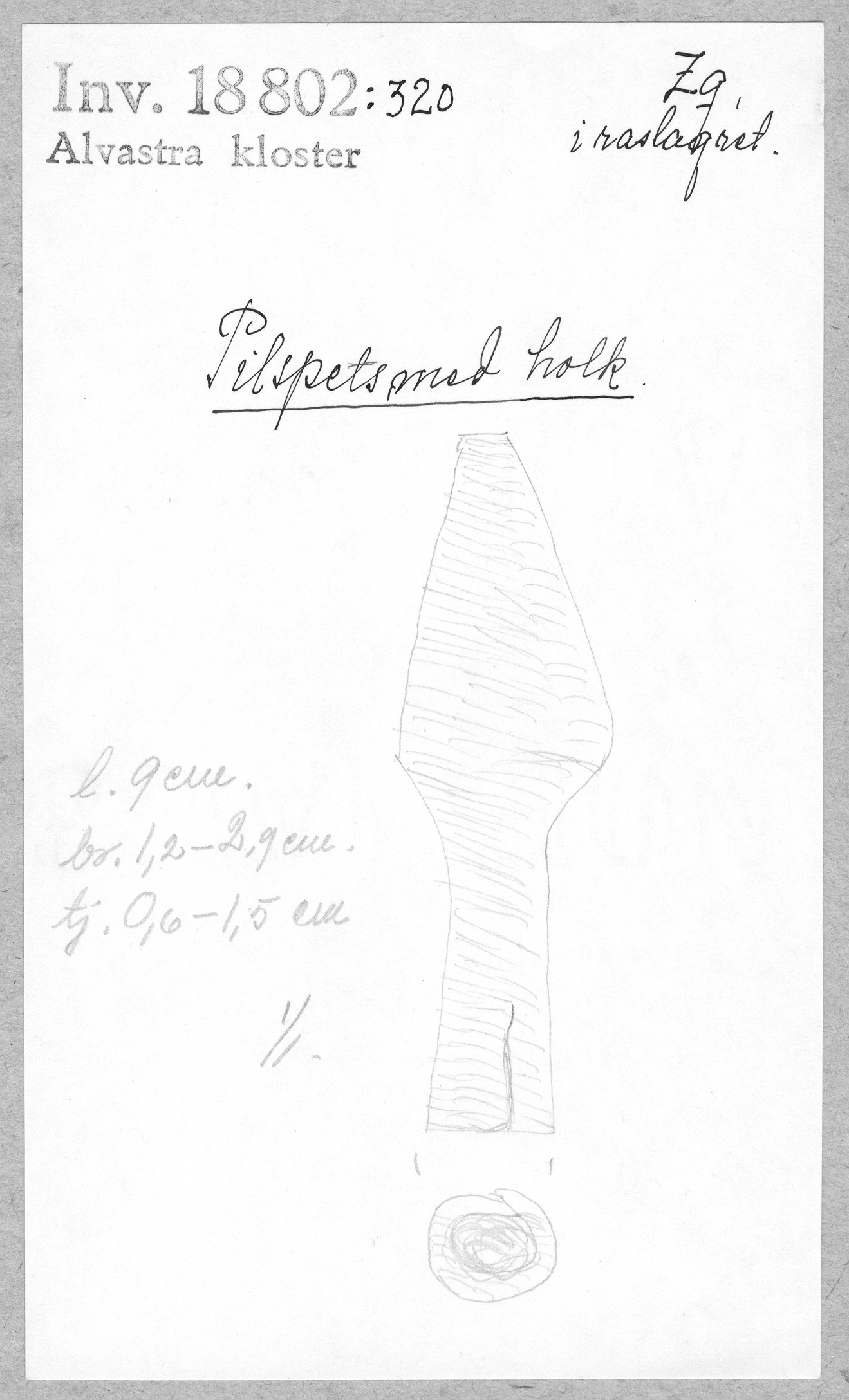 Ög, Västra Tollstad, Alvastra kloster. Pilspets med holk