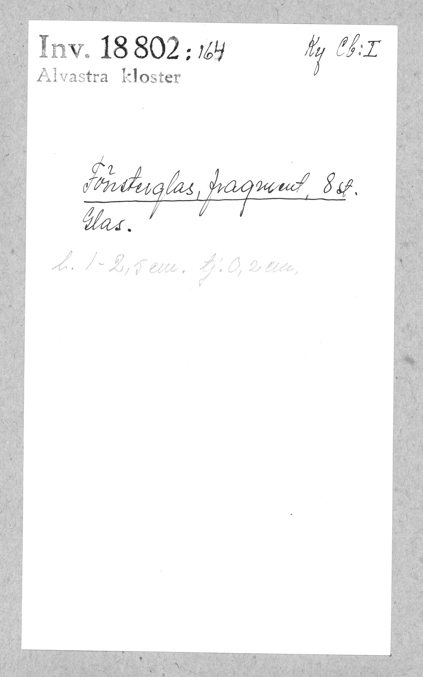 Ög, Västra Tollstad, Alvastra kloster. Fönsterglas, fragment, 8 st
