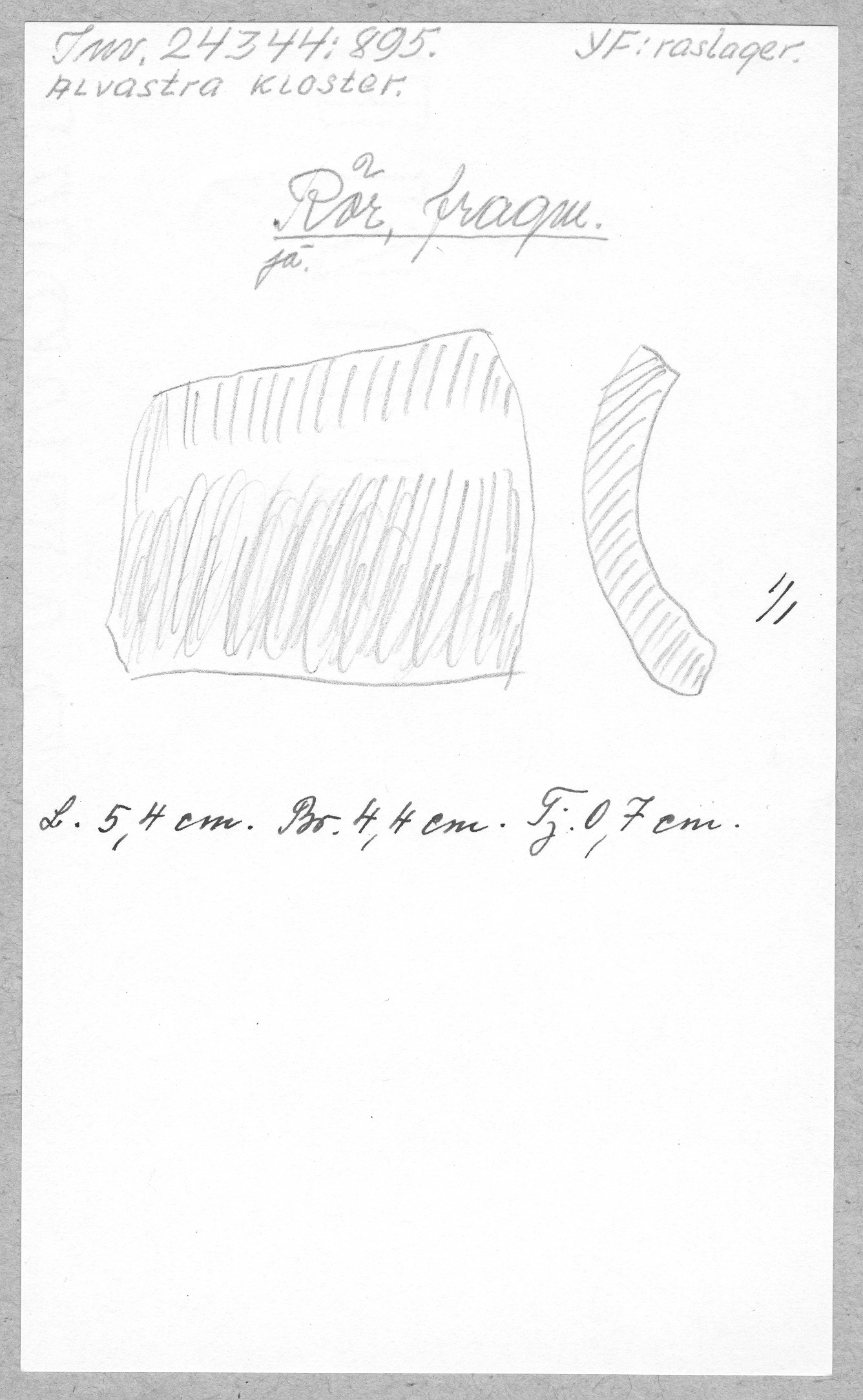 Ög, Västra Tollstad, Alvastra kloster. Rör, fragm