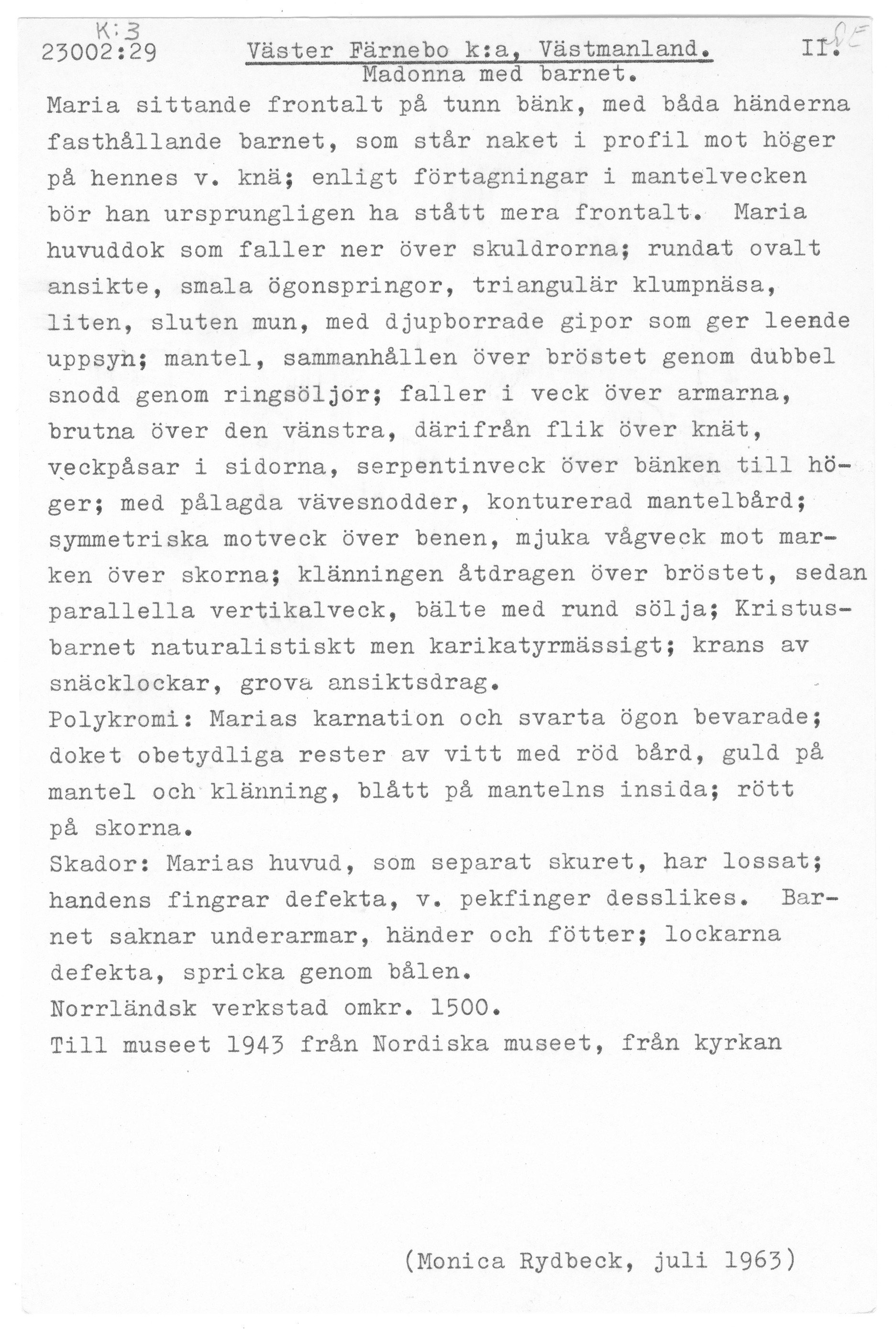 23002:29 \ Västmanland \ Väster Färnebo k:a, Västmanland. \ Madonna med barnet \ Medeltid