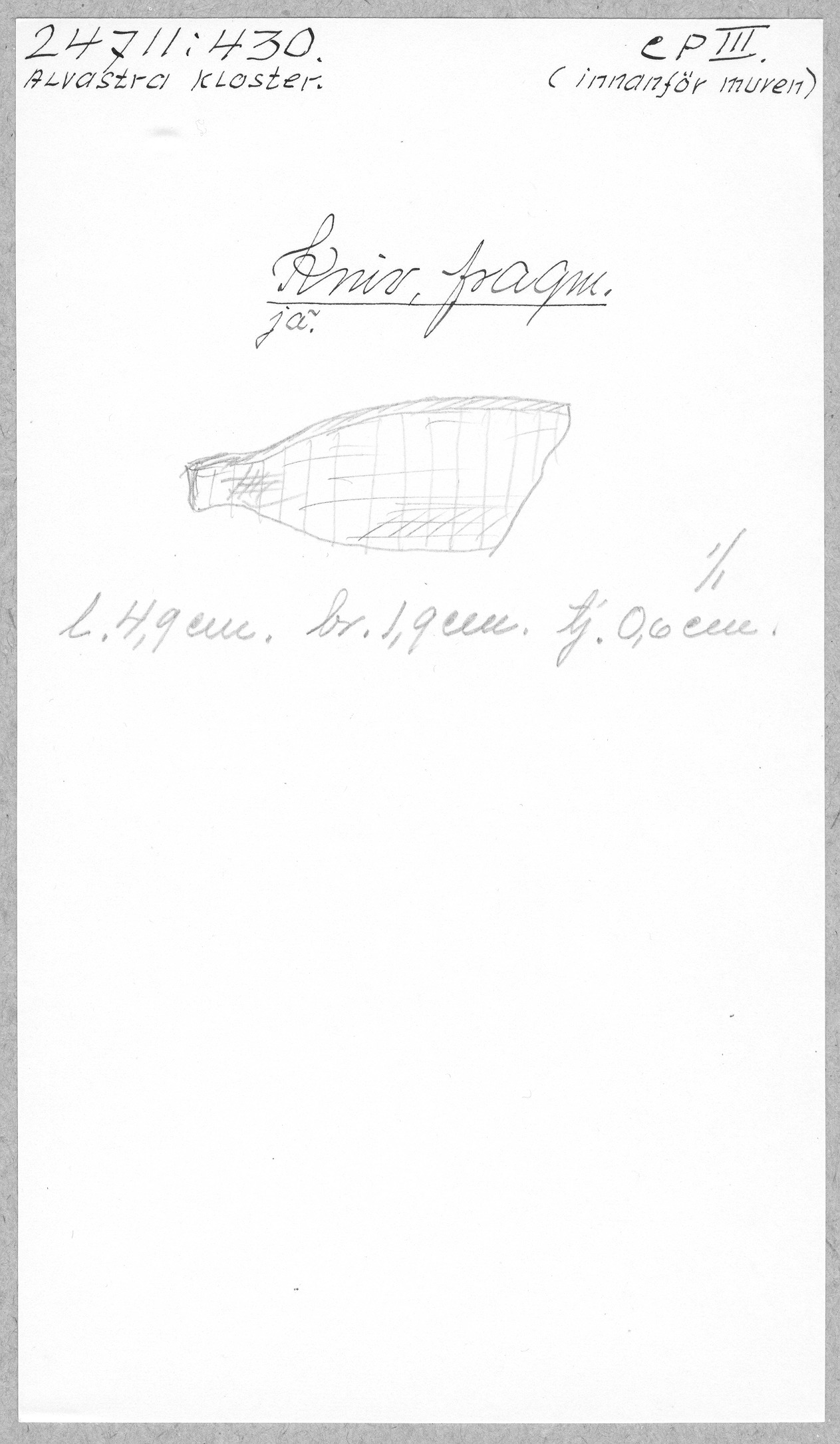 Ög, Västra Tollstad, Alvastra kloster. Kniv, fragm
