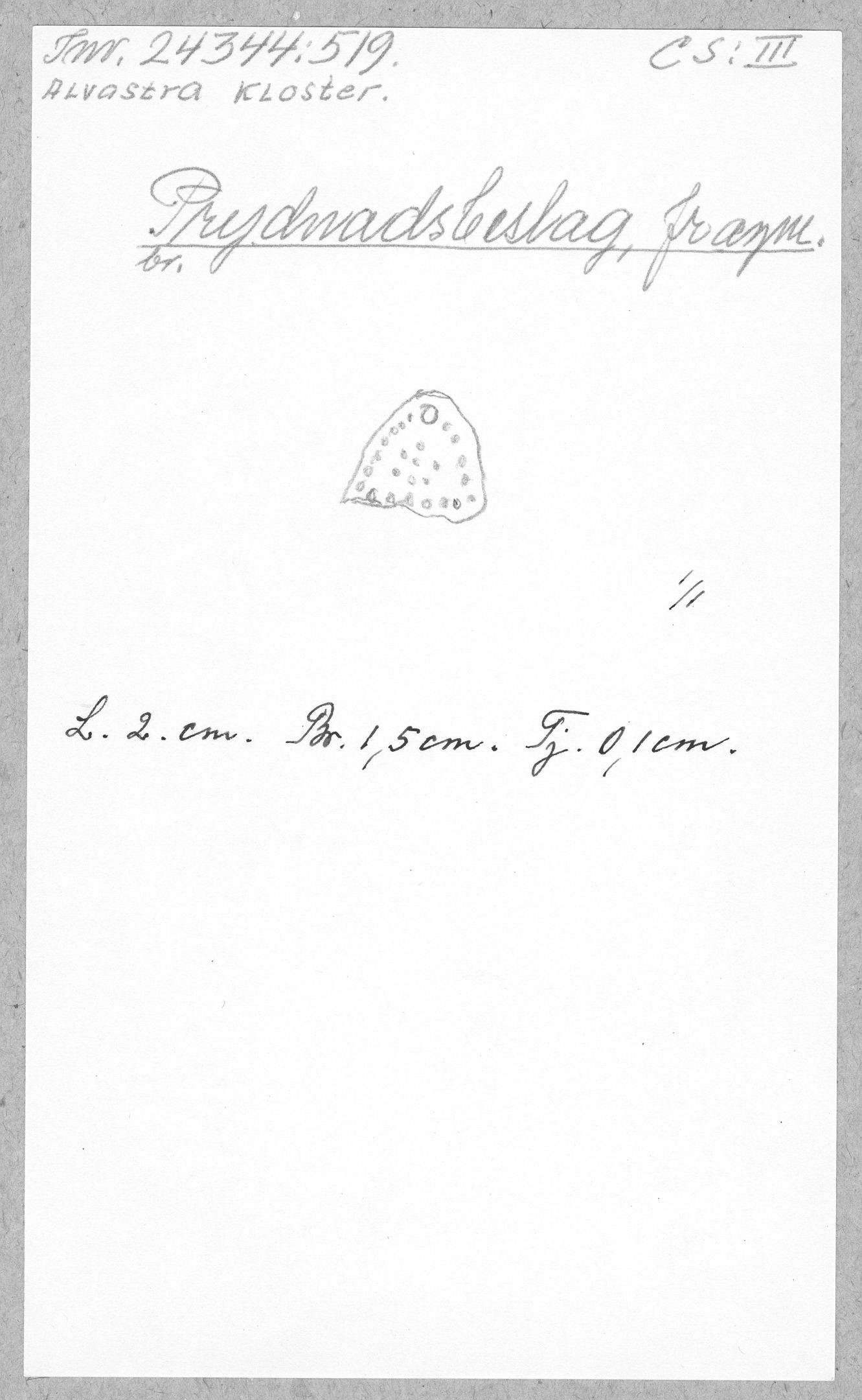 Ög, Västra Tollstad, Alvastra kloster. Prydnadsbeslag, fragm