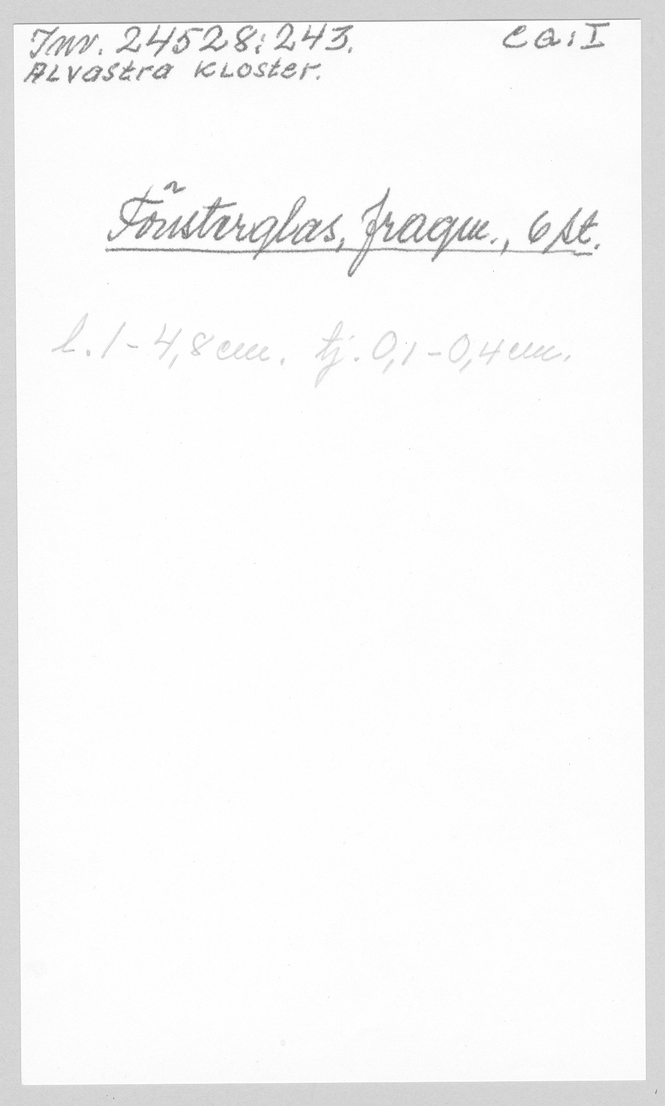Ög, Västra Tollstad, Alvastra kloster. Fönsterglas, fragm. 6 st