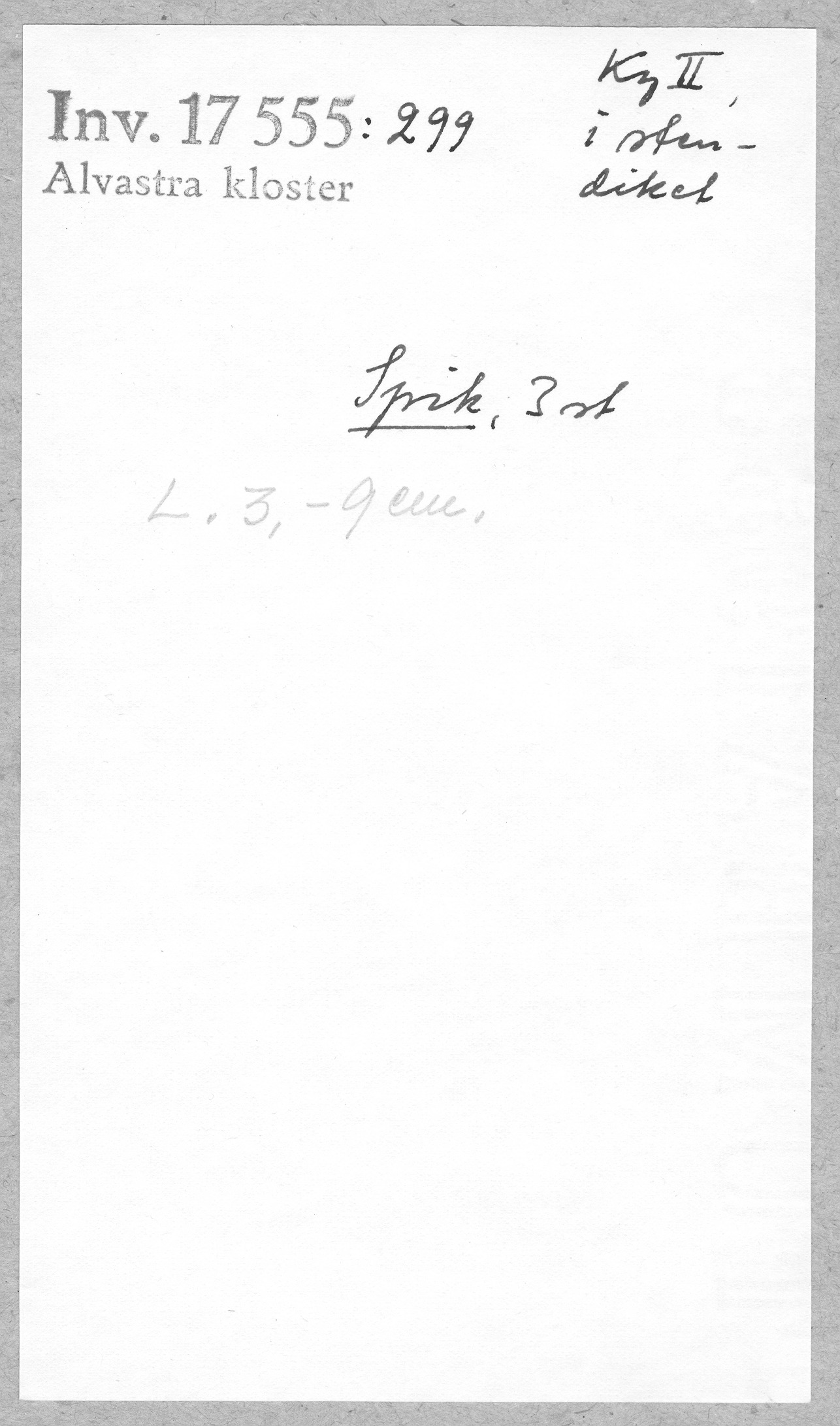 Ög, Västra Tollstad, Alvastra kloster. Spik, 3 st