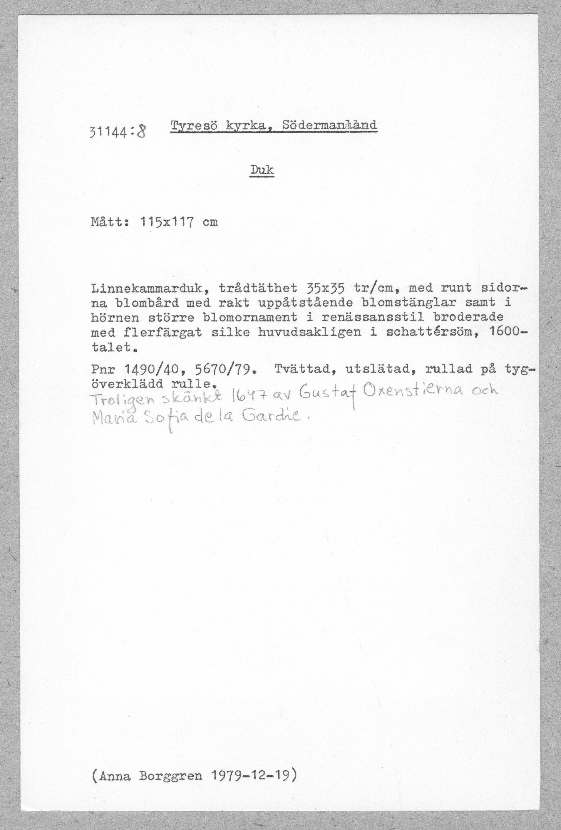 31144:8 \ Tyresö kyrka, Södermanland \ Duk \ Medeltid