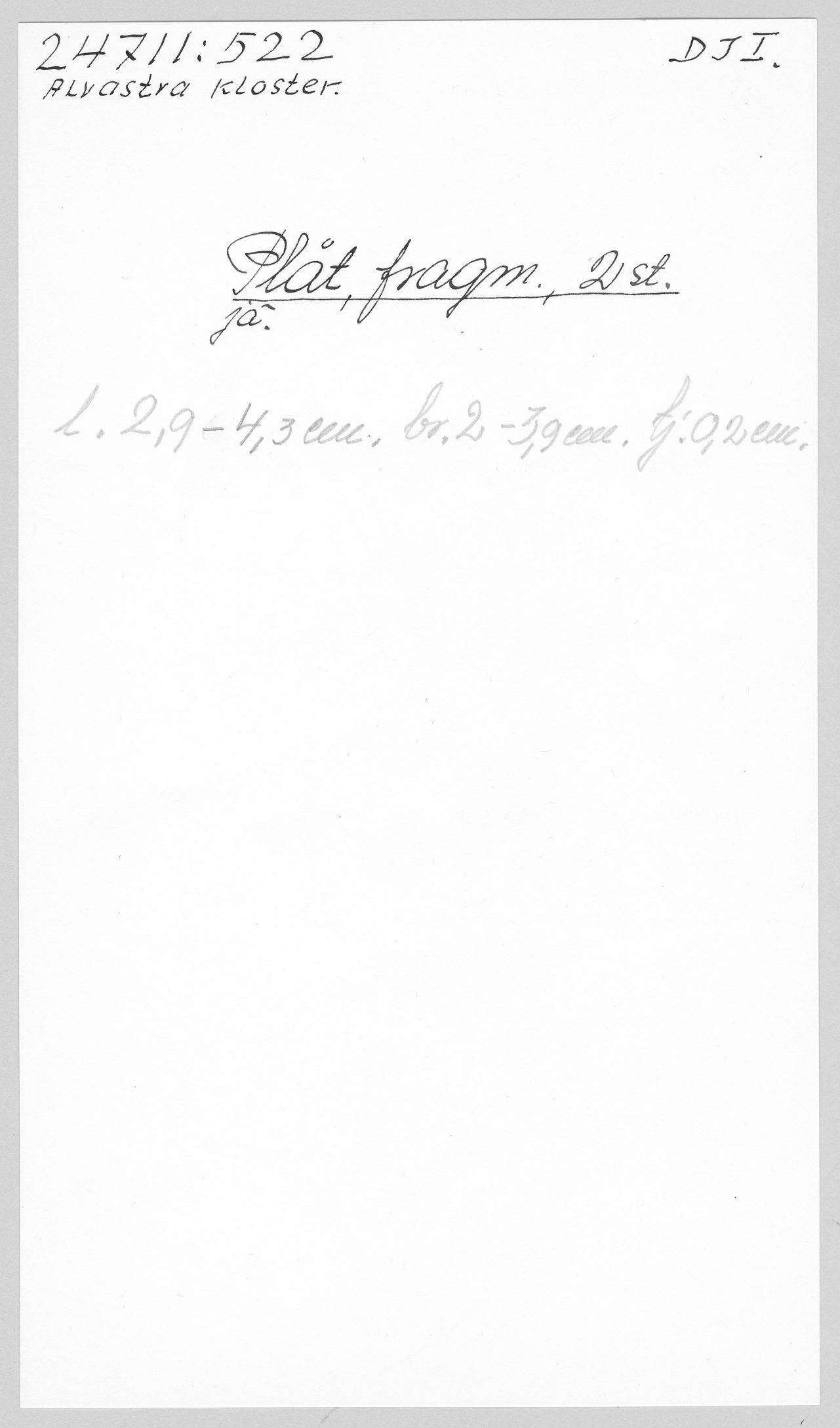 Ög, Västra Tollstad, Alvastra kloster. Plåt, fragm. 2 st