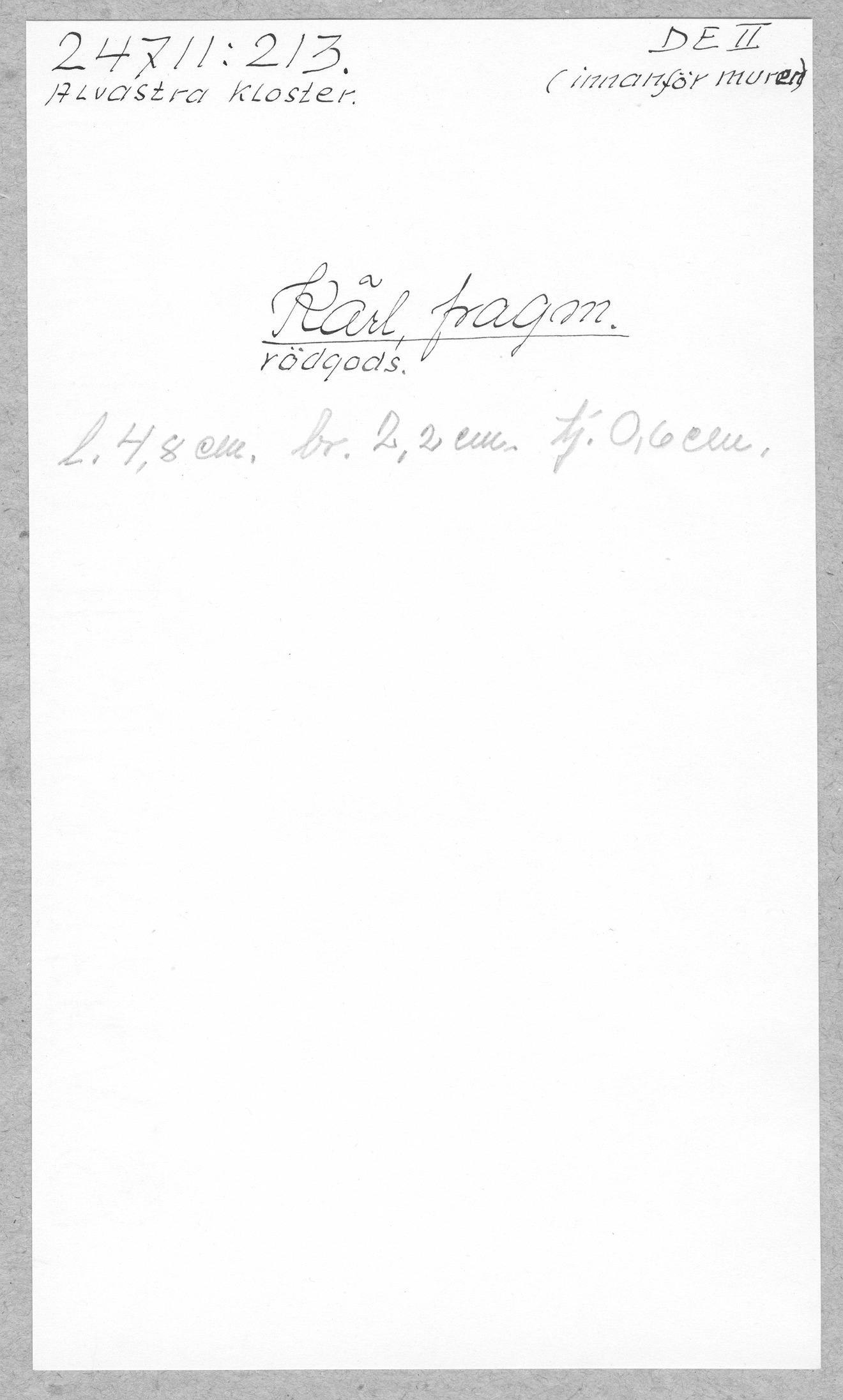 Ög, Västra Tollstad, Alvastra kloster. Kärl, fragm