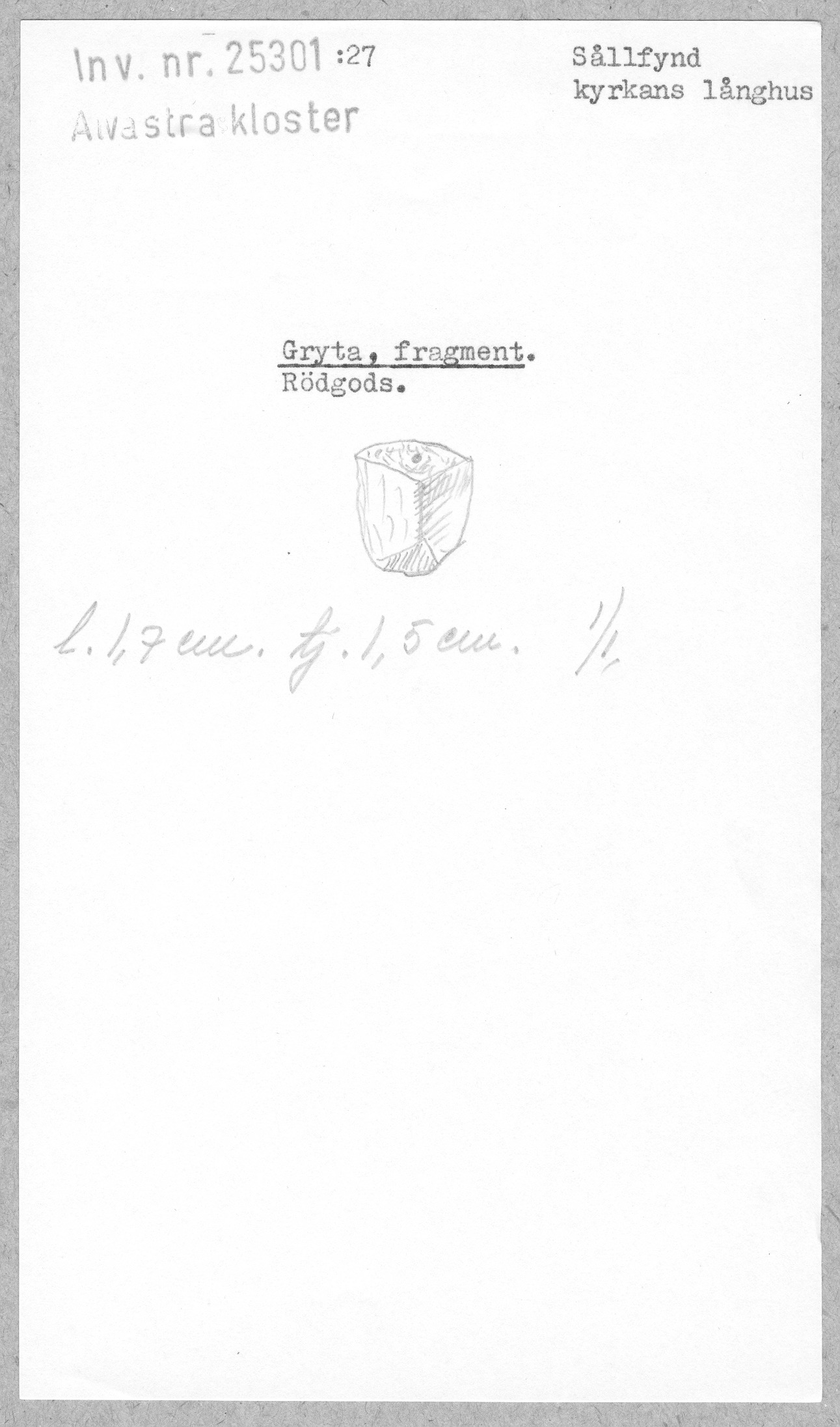 Ög, Västra Tollstad, Alvastra kloster. Gryta, fragment