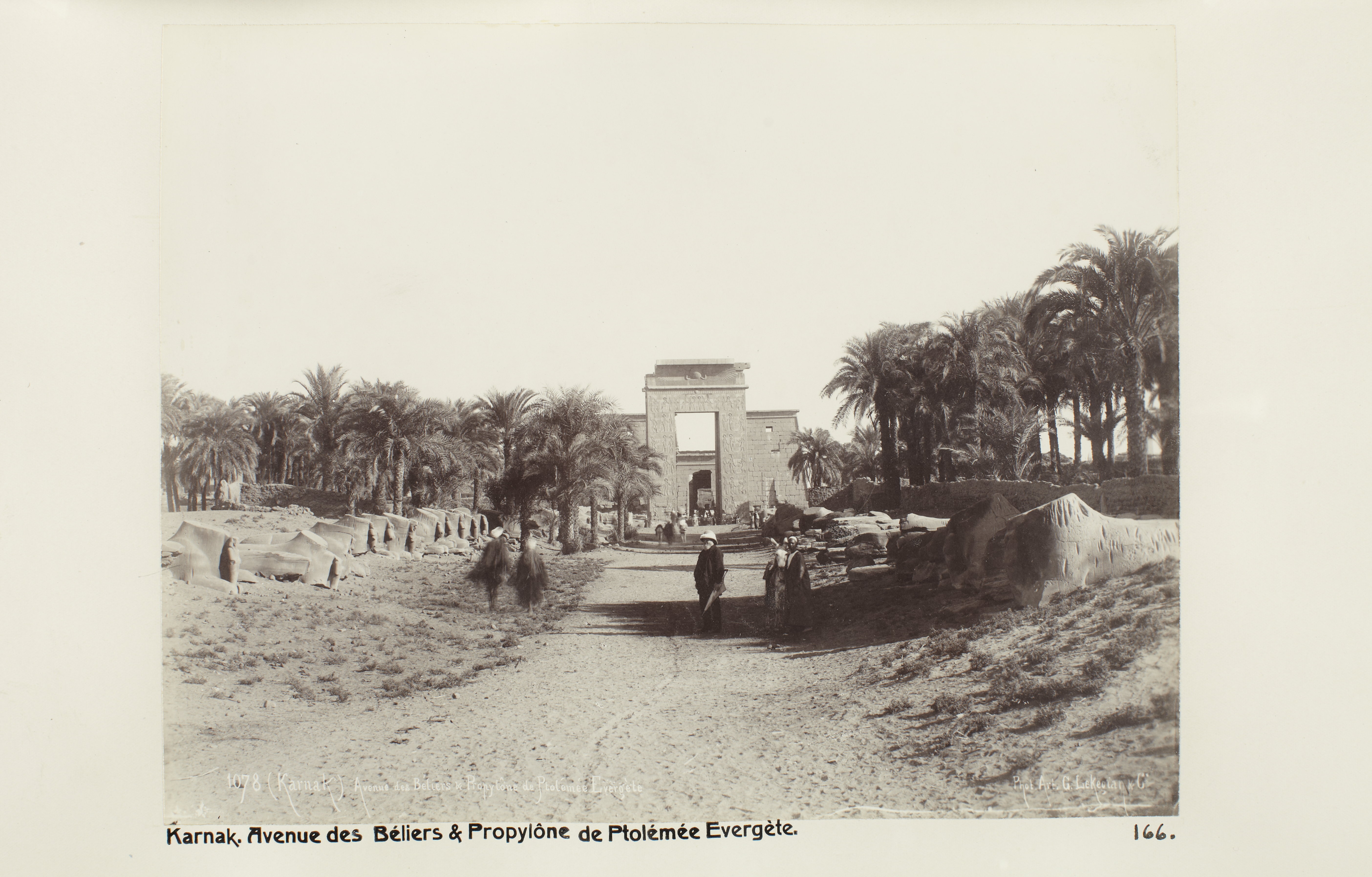 Fotografi från familjen von Hallwyls resa genom Egypten och Sudan, 5 november 1900 – 29 mars 1901. Sfinxernas allé, Ptolemaios Evergetes pylon i Karnak.