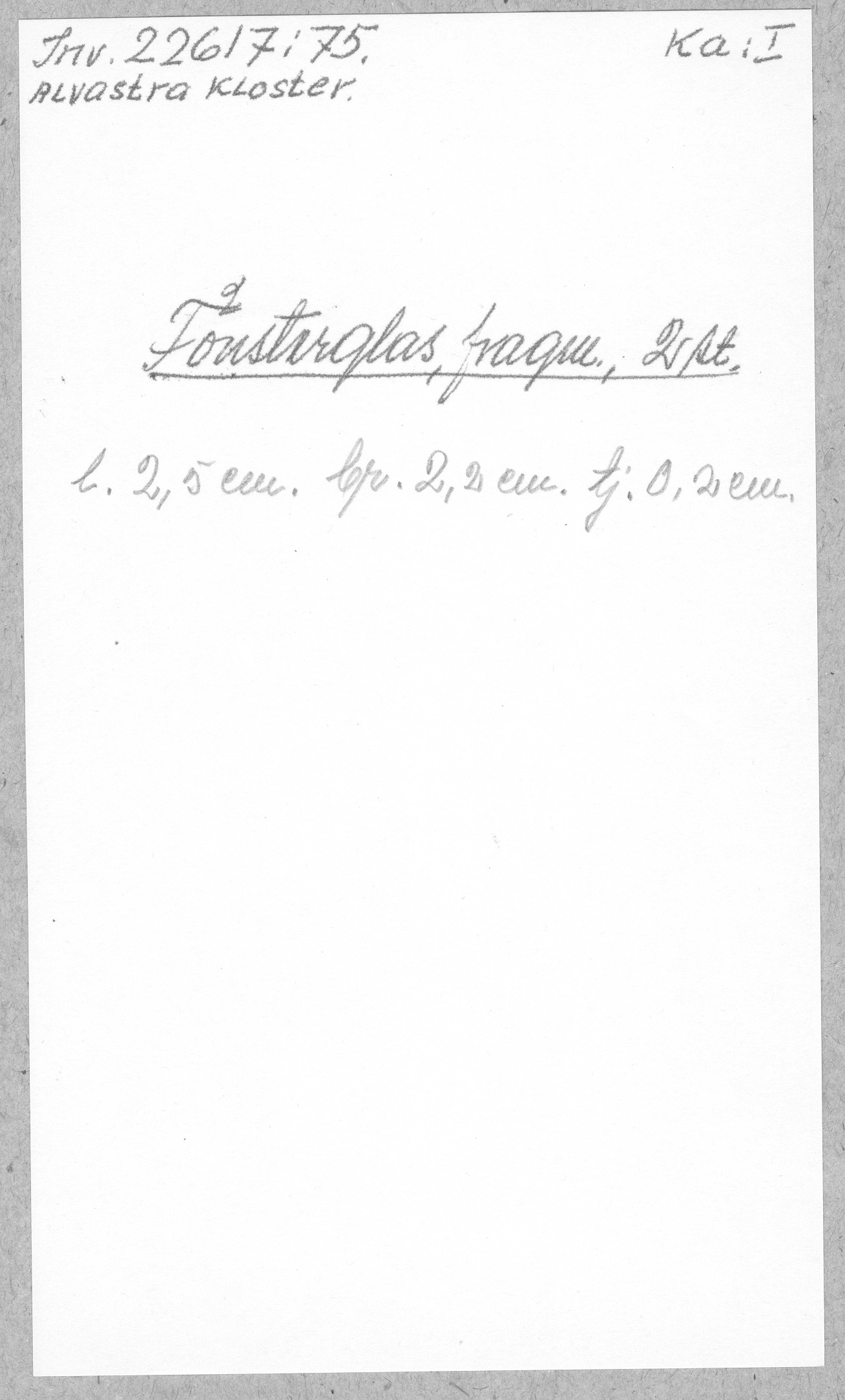 Ög, Västra Tollstad, Alvastra kloster. Fönsterglas, fragm. 2 st