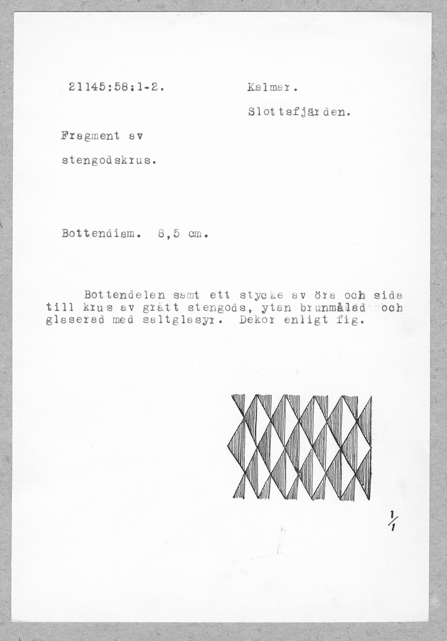 21145:58:1-2. Kalmar. Slottsfjärden. Fragment av stengodskrus