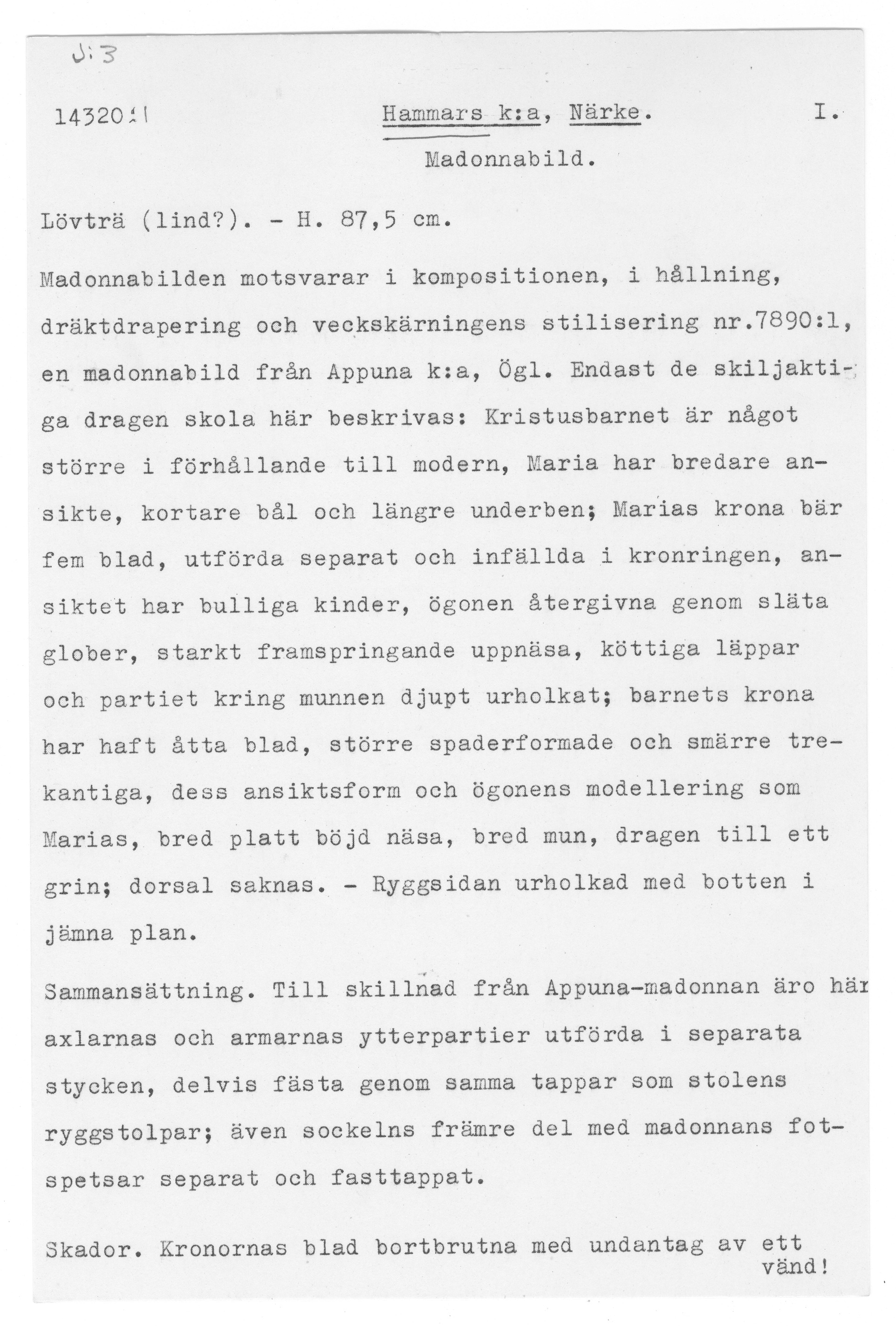 14320:1 \ Närke \ Hammars k:a, Närke. \ Madonnabild \ Medeltid