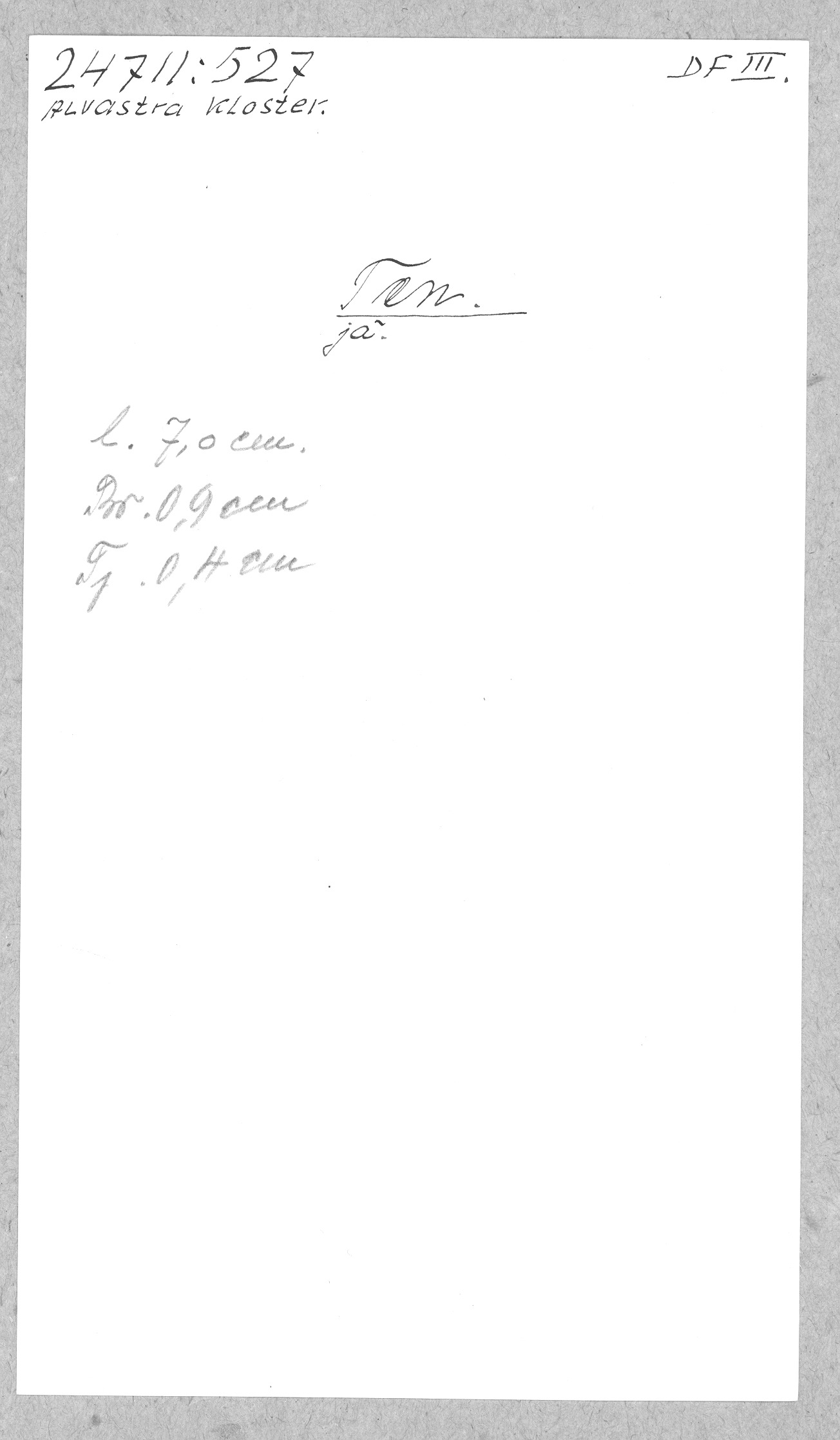 | Föremålsnummer | |