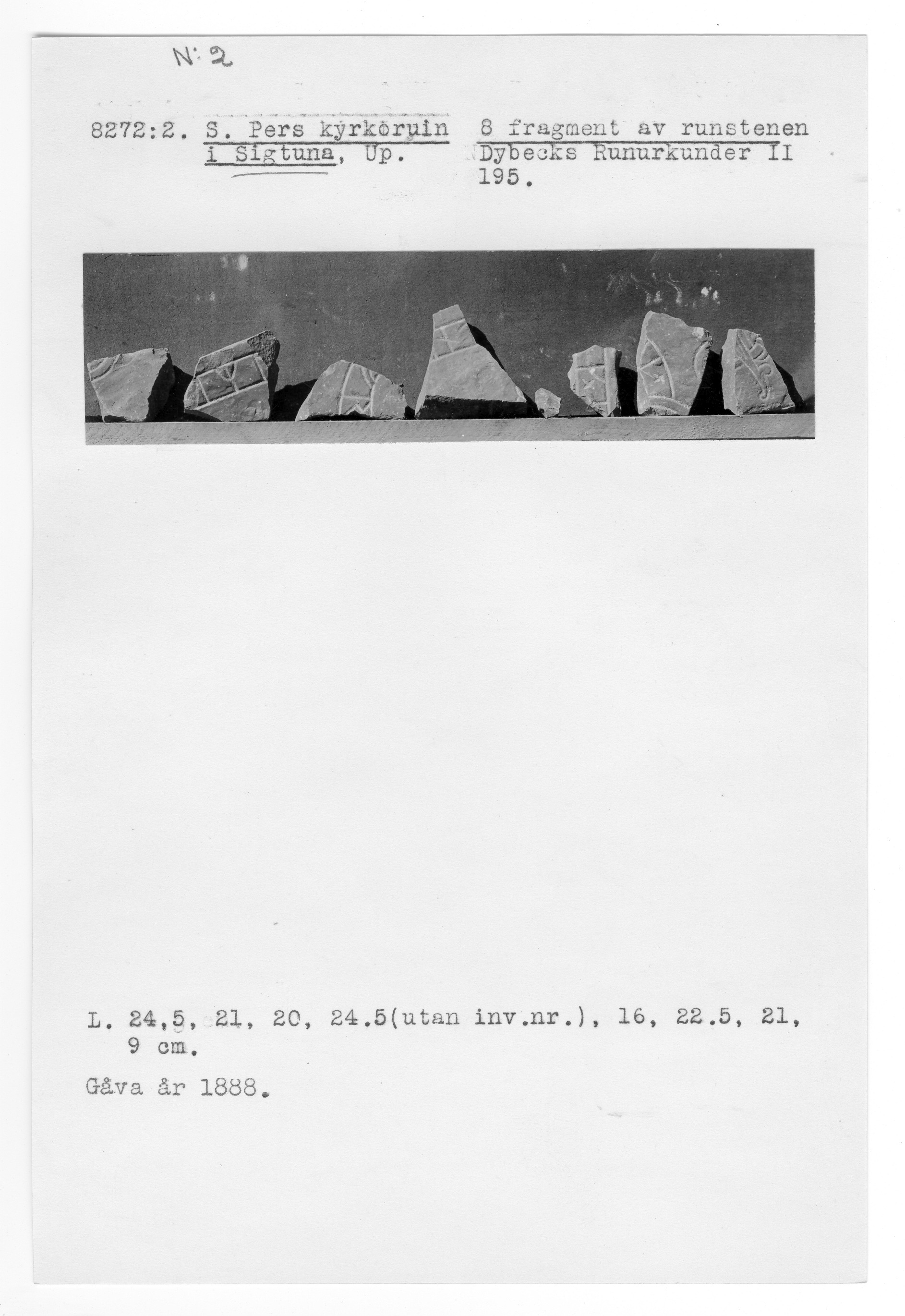 8272:2 \ Uppland \ S. Pers kyrkoruin i Sigtuna, Up. \ 8 fragment av runstenen Dybecks runurkunder II 195 \ Medeltid