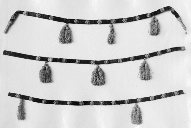 Hattband med guldknappar och tofsar.
