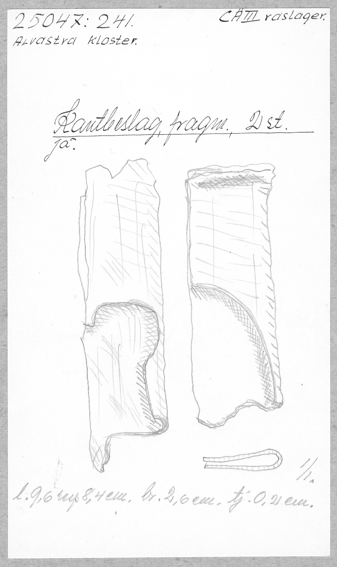 Ög, Västra Tollstad, Alvastra kloster. Kantbeslag, fragm. 2st