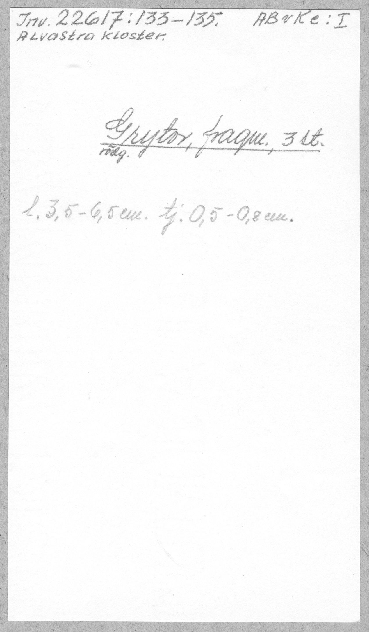 Ög, Västra Tollstad, Alvastra kloster. Grytor, fragm. 3 st