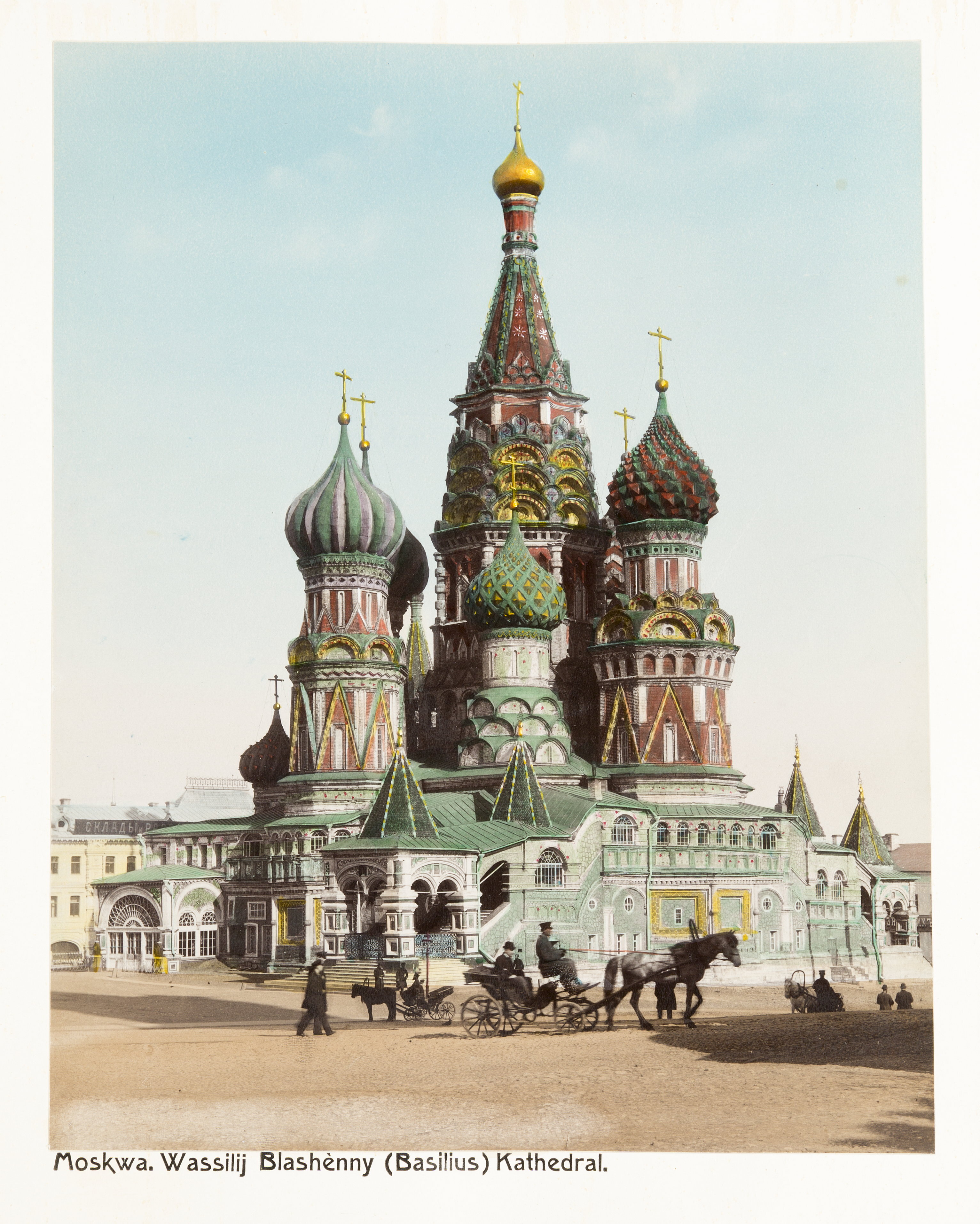 Handkolorerat foto på Vasilijkatedralen i Moskva.