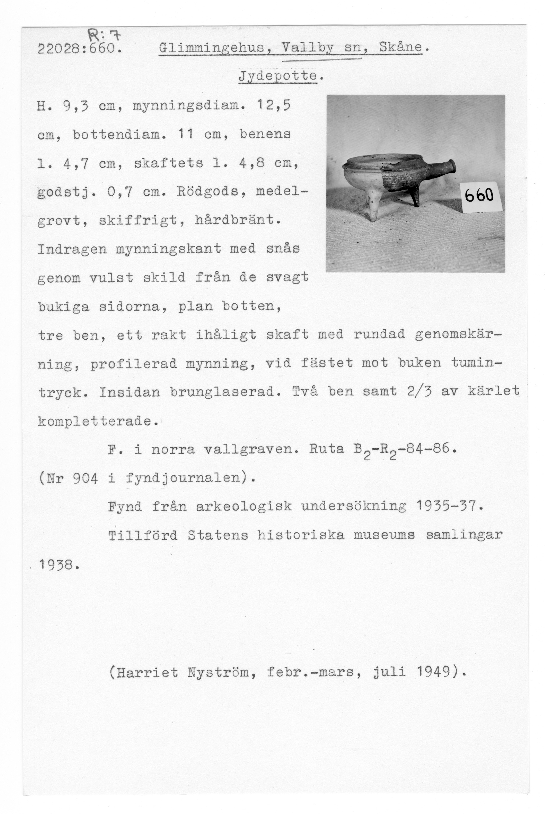 22028:660 \ Skåne \ Glimmingehus, Vallby sn, Skåne. \ Jydepotte \ Medeltid