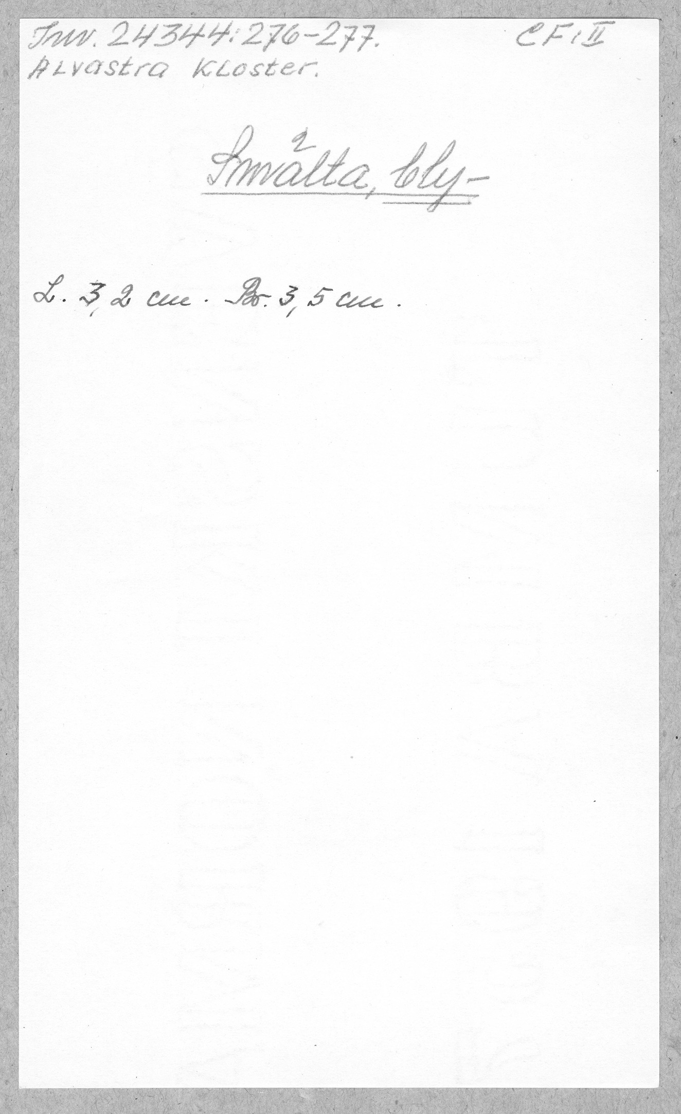 Ög, Västra Tollstad, Alvastra kloster. Smälta, bly-