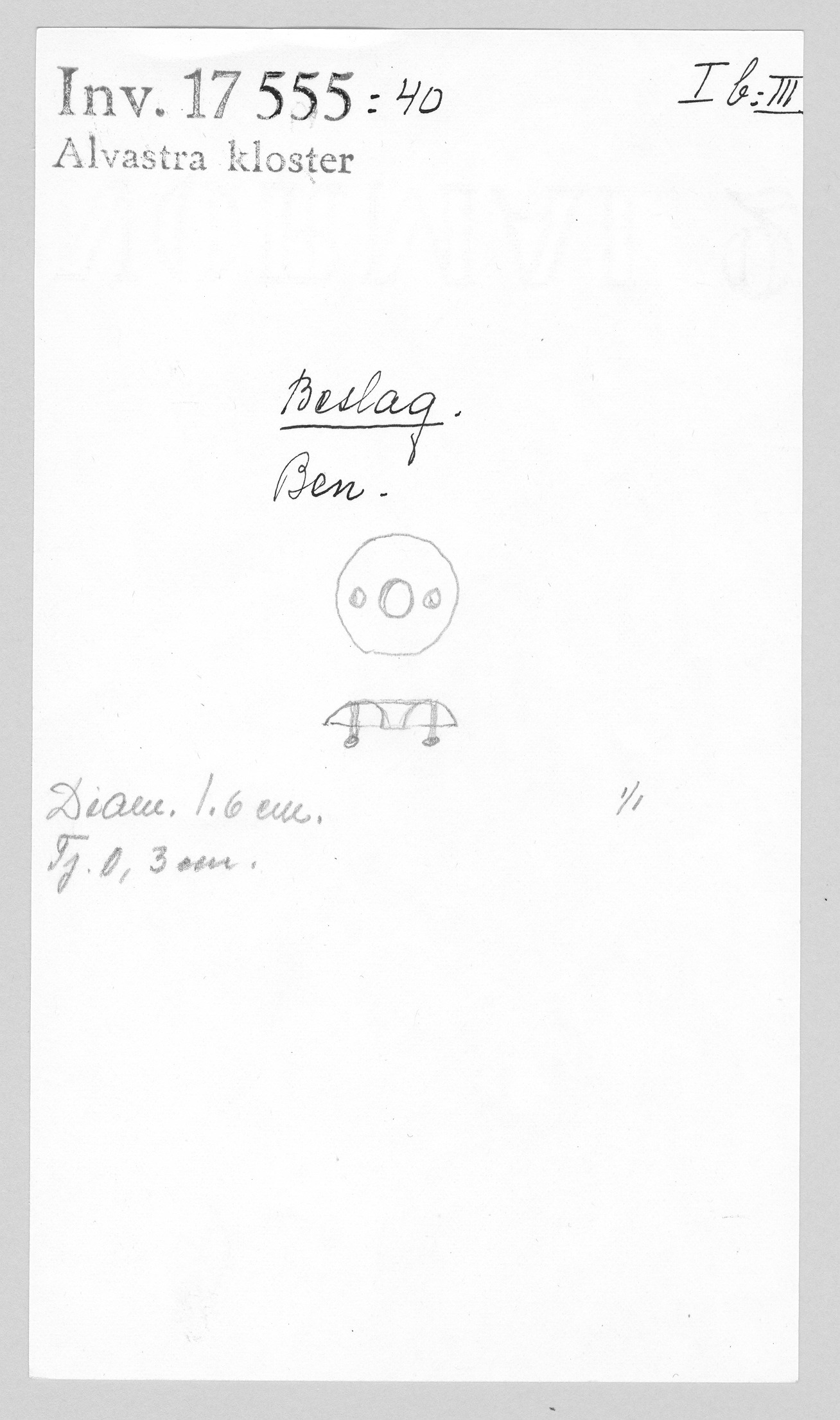 Ög, Västra Tollstad, Alvastra kloster. Beslag