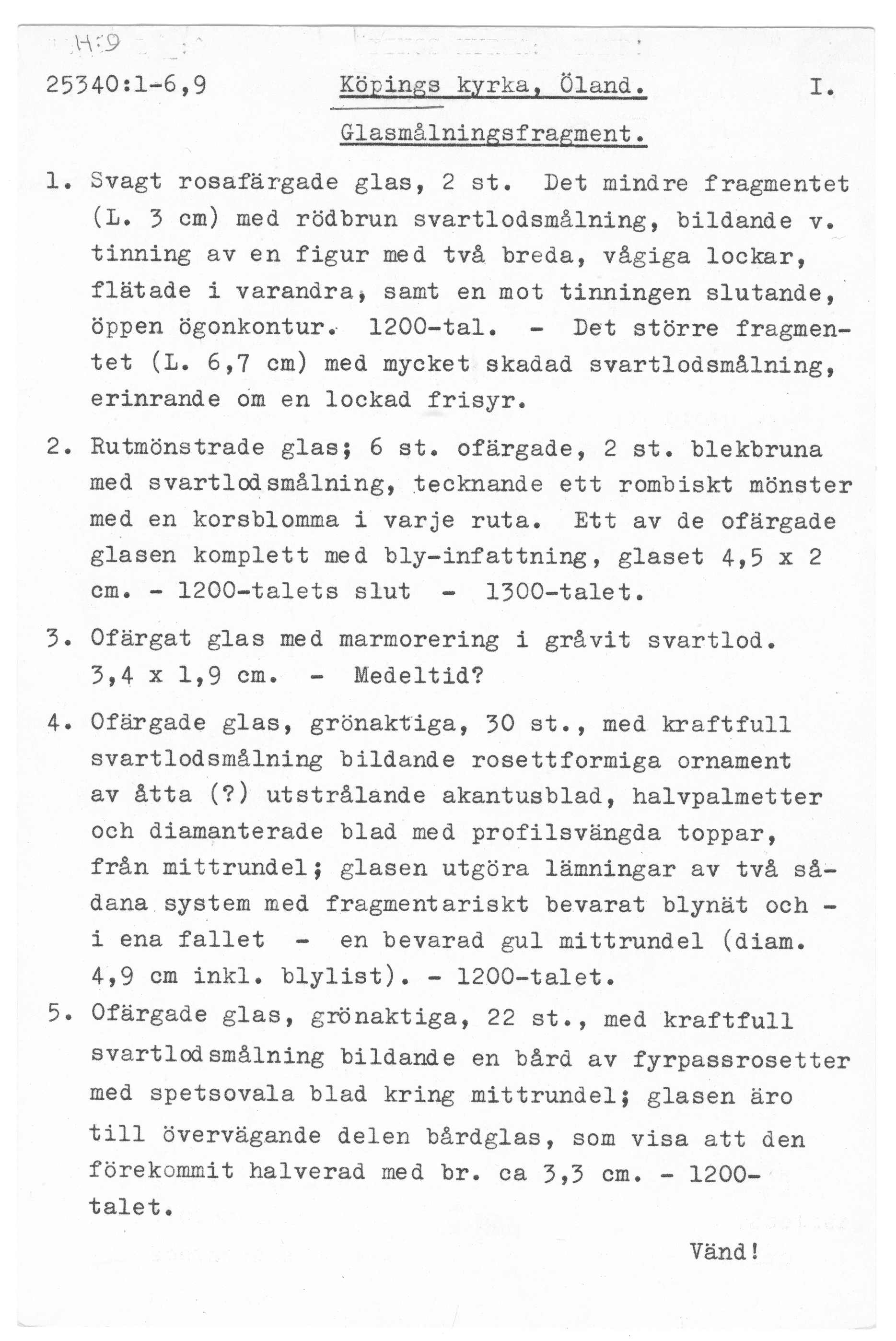 25340:1-6-9 \ Öland \ Köpings kyrka, Öland. \ Glasmålningsfragment \ Medeltid