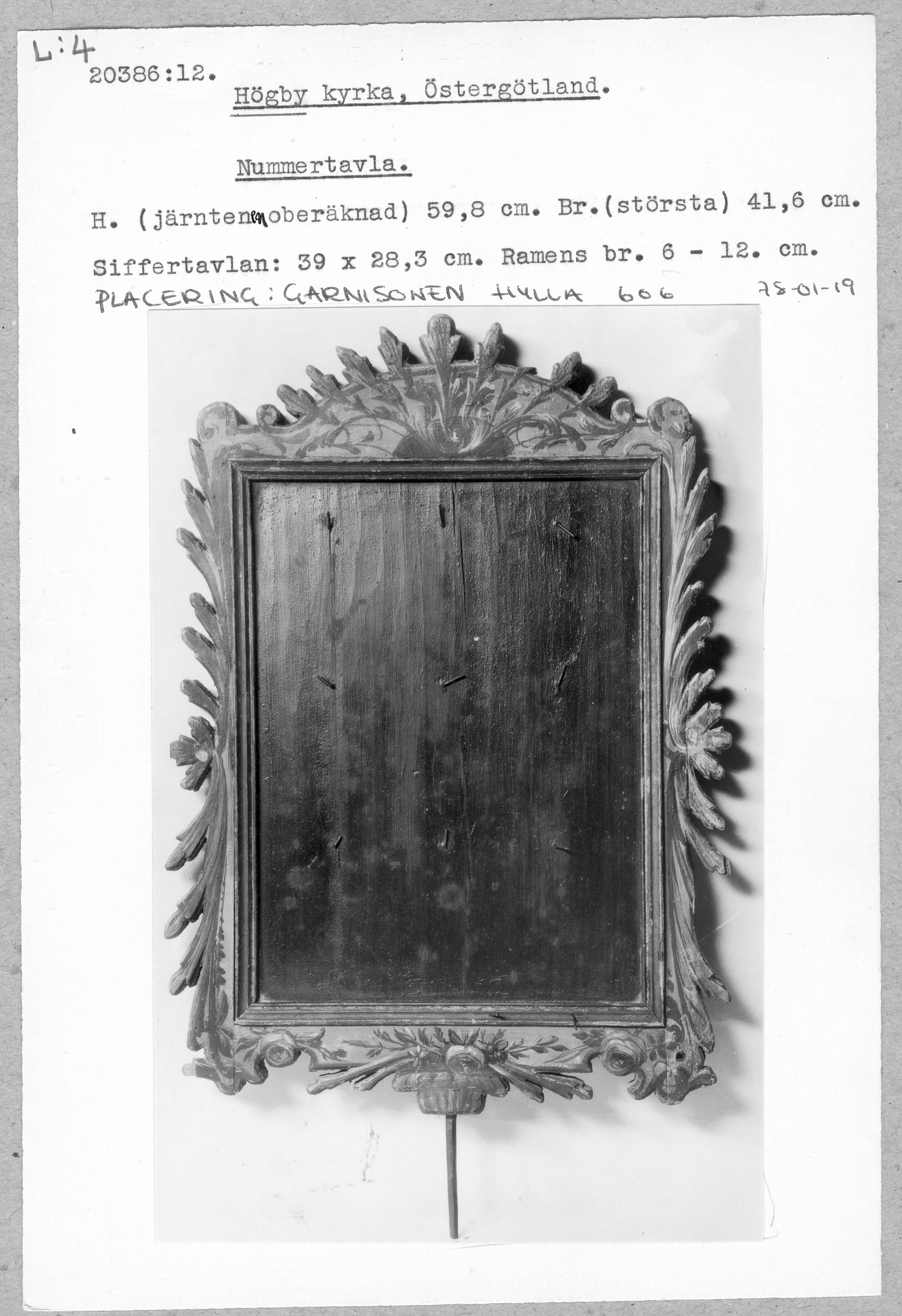 20386:12 \ Östergötland \ Högby kyrka, Östergötland. \ Nummertavla \ Medeltid